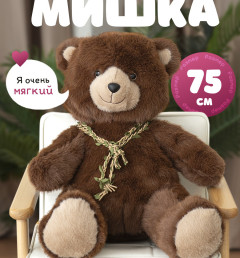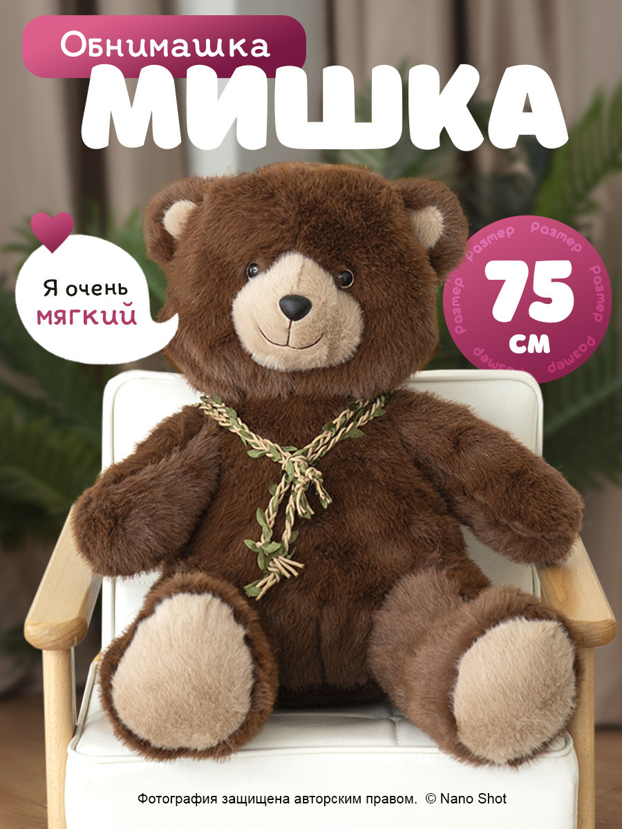 Мягкая игрушка плюшевый медведь/ мишка бурый, 75 см