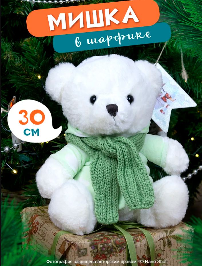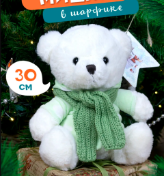 Мягкая игрушка плюшевый Медведь в зелёном шарфике, 30 см