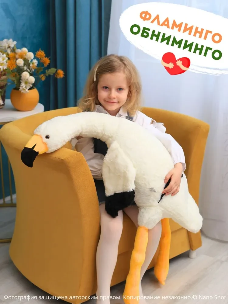 Мягкая игрушка-подушка Фламинго обнимашка белый, 130 см