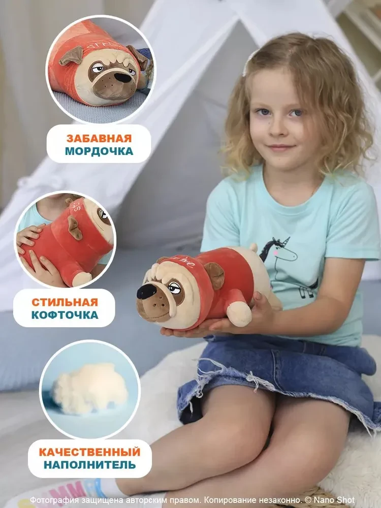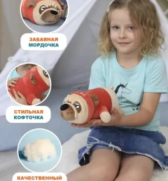 Ищете идеальный подарок для любителей собачек? Представляем Вам мягкую игрушку мопса в костюме - плюшевую игрушку, которая станет отличным другом. Этот милый мопс подойдет как мальчикам, так и девочкам, это классный подарок и взрослым. Мягкая игрушка бульдог не оставит Вас равнодушным, у неё милая мордочка, яркий костюмчик. Кроме этого, эта игрушка выполняет функцию антистресса, подобно волшебной подушке. Она поможет Вам расслабиться, снять напряжение и усталость после трудного дня. А еще, обратите внимание, насколько удобно спать в объятиях этого французского бульдога. Его мягкость и теплота создадут идеальные условия для сна и приятного отдыха. Не упустите возможность обладать этой волшебной мягкой игрушкой, которая привнесет радость, комфорт и волшебство в вашу жизнь. Порадуйте себя или близких этим прекрасным подарком прямо сейчас!