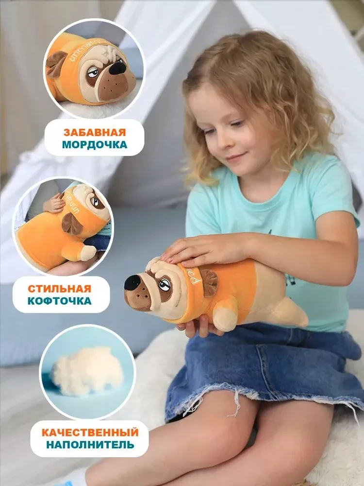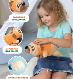 Ищете идеальный подарок для любителей собачек? Представляем Вам мягкую игрушку мопса в костюме - плюшевую игрушку, которая станет отличным другом. Этот милый мопс подойдет как мальчикам, так и девочкам, это классный подарок и взрослым. Мягкая игрушка бульдог не оставит Вас равнодушным, у неё милая мордочка, яркий костюмчик. Кроме этого, эта игрушка выполняет функцию антистресса, подобно волшебной подушке. Она поможет Вам расслабиться, снять напряжение и усталость после трудного дня. А еще, обратите внимание, насколько удобно спать в объятиях этого французского бульдога. Его мягкость и теплота создадут идеальные условия для сна и приятного отдыха. Не упустите возможность обладать этой волшебной мягкой игрушкой, которая привнесет радость, комфорт и волшебство в вашу жизнь. Порадуйте себя или близких этим прекрасным подарком прямо сейчас!