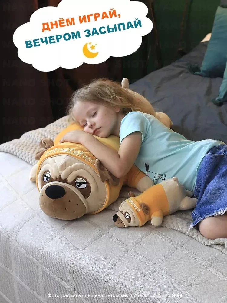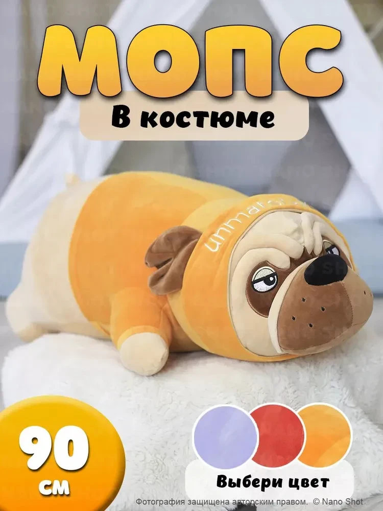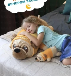 Ищете идеальный подарок для любителей собачек? Представляем Вам мягкую игрушку мопса в костюме - плюшевую игрушку, которая станет отличным другом. Этот милый мопс подойдет как мальчикам, так и девочкам, это классный подарок и взрослым. Мягкая игрушка бульдог не оставит Вас равнодушным, у неё милая мордочка, яркий костюмчик. Кроме этого, эта игрушка выполняет функцию антистресса, подобно волшебной подушке. Она поможет Вам расслабиться, снять напряжение и усталость после трудного дня. А еще, обратите внимание, насколько удобно спать в объятиях этого французского бульдога. Его мягкость и теплота создадут идеальные условия для сна и приятного отдыха. Не упустите возможность обладать этой волшебной мягкой игрушкой, которая привнесет радость, комфорт и волшебство в вашу жизнь. Порадуйте себя или близких этим прекрасным подарком прямо сейчас!
