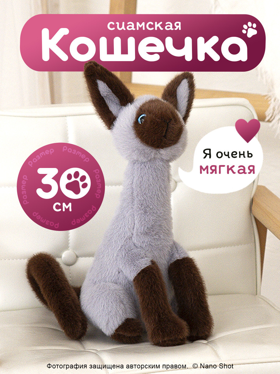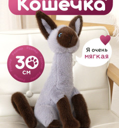 Мягкая игрушка Сиамский кот/ котик серый, 30 см