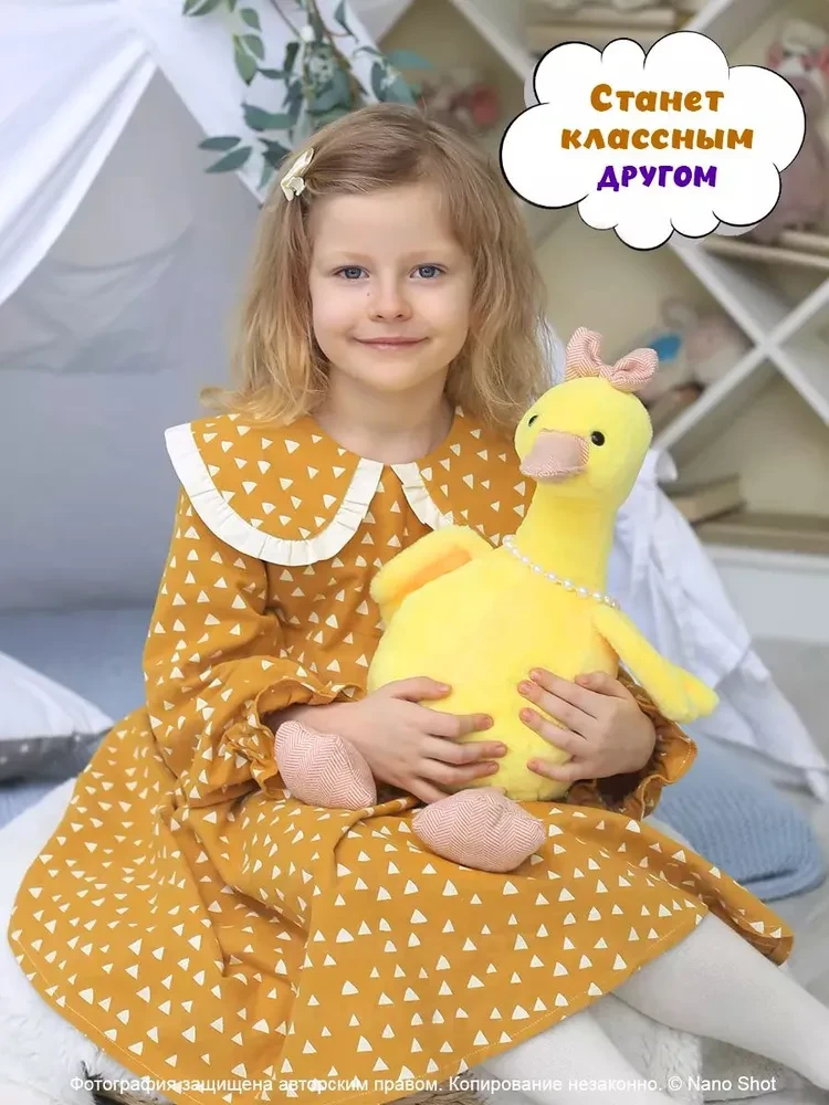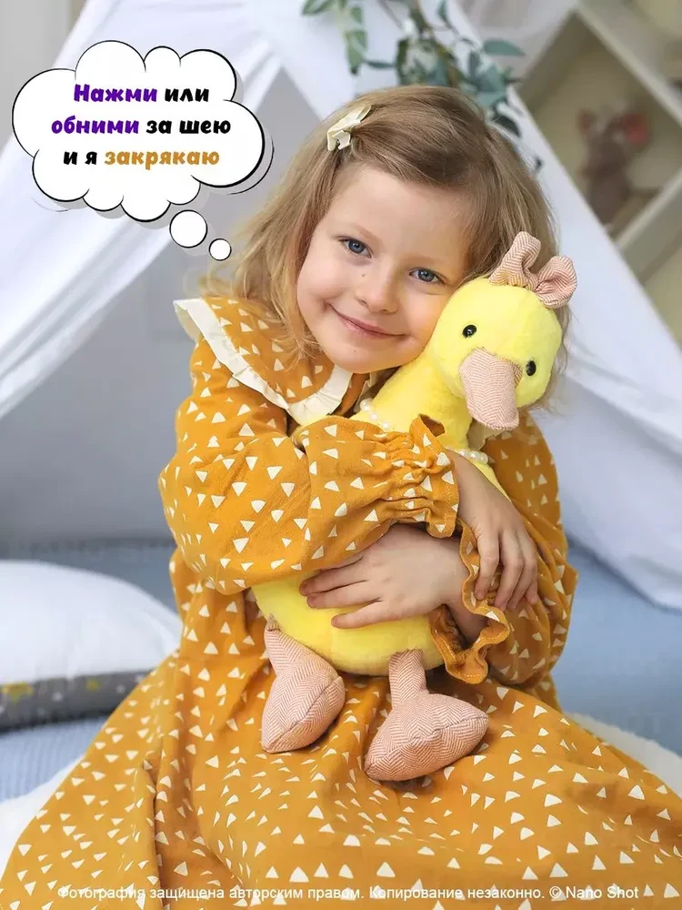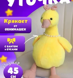 Мягкая музыкальная игрушка желтая Уточка Кря-Кря, 45 см