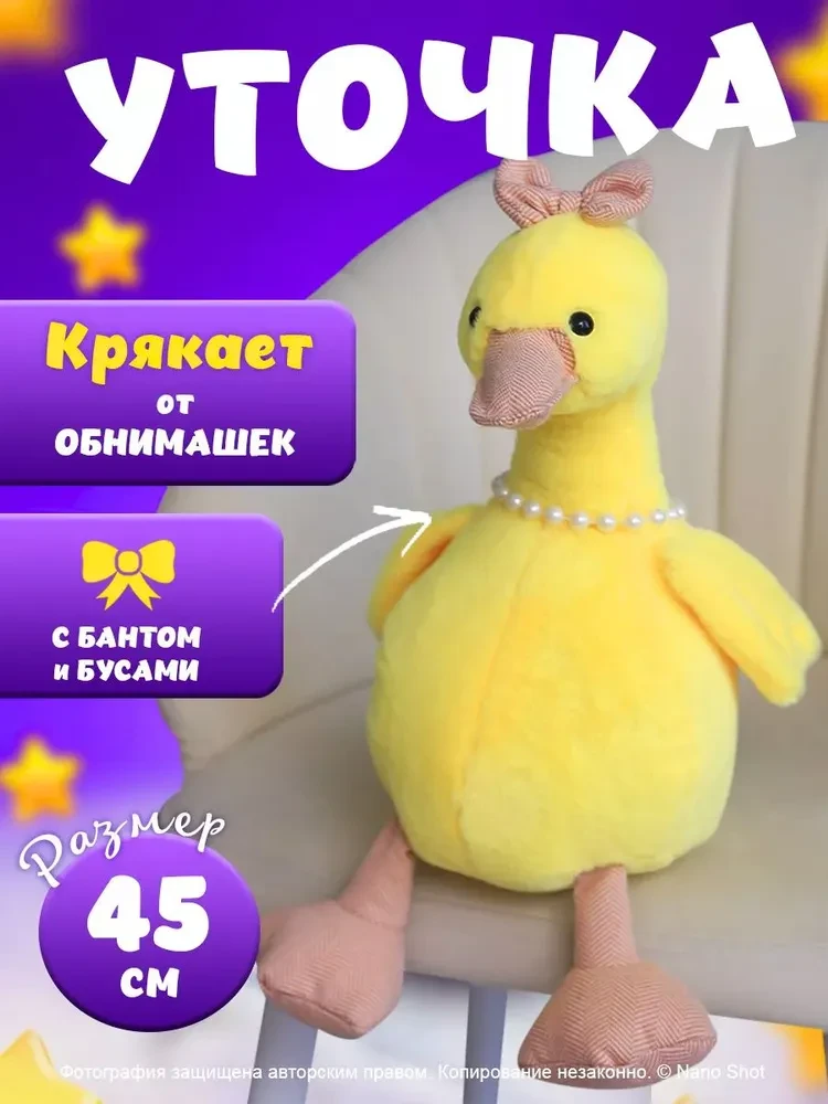 Представляем Вашему вниманию мягкую игрушку — желтую уточку Кря-Кря, которая станет идеальным спутником для вашего ребенка. Крякающая плюшевая игрушка отлично подходит для обнимания и игр, также это классный антистресс. Этот утёнок не только порадует ребенка, но и станет прекрасным подарком на день рождения и любой праздник, да и взрослым игрушка очень понравится. Уточка Кря-Кря выполнена из высококачественных материалов, что делает ее безопасной для детей. Если обнять уточку за шею, она мило закрякает, у уточки очаровательные бусики и красивый бантик, которые доставят массу позитива детям. Кря-Кря станет отличным помощником в развитии ребенка. Эта игрушка поможет развивать творческие способности ребенка. С ней можно устраивать ролевые игры, придумывать истории и даже рисовать. Уточка станет верным другом в процессе обучения и развития, а также в играх с другими игрушками, такими как конструкторы или куклы. Не упустите возможность подарить вашему ребенку радость и комфорт с мягкой музыкальной игрушкой Кря-Кря. Она станет незаменимым спутником в его жизни, а также украсит детскую комнату. Подарите своему малышу игрушку, которая будет радовать его каждый день, наполняя его мир музыкой и весельем.