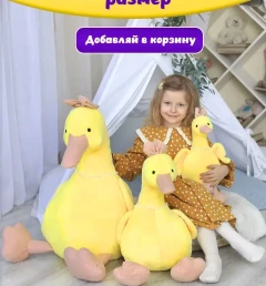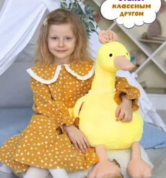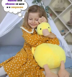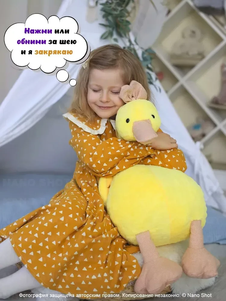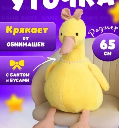 Мягкая музыкальная игрушка желтая Уточка Кря-Кря, 65 см