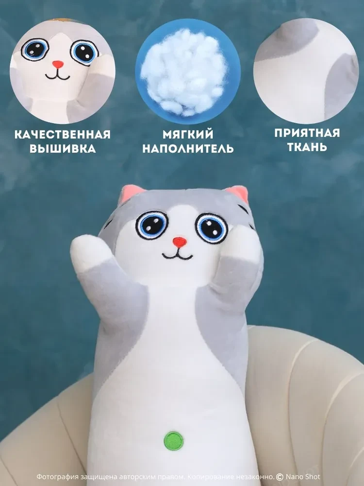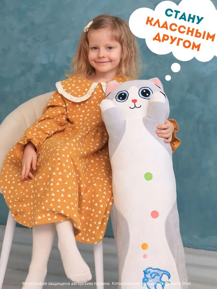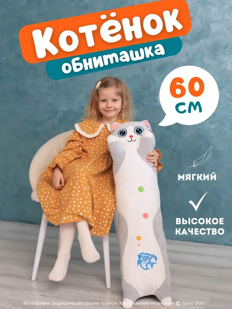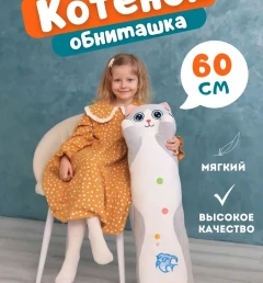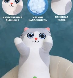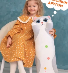 Хотите подарить своим близким милого и очаровательного котика? Милый Котенок серого цвета станет идеальным подарком для вашего ребенка, будь то девочка или мальчик, да и взрослым этот котёнок- антистресс очень понравится.Котенок не только украсит детскую комнату, но и станет верным другом для ребенка. Игрушка выполнена из качественных материалов, что делает ее безопасной для новорожденных и детей старшего возраста. Мягкий плюш приятно ощущается на ощупь, а размер в 60 см позволяет удобно обниматься с ней во время игр или сна. Котик станет отличным компаньоном для вашего ребенка, помогая развивать его воображение и творческие способности. Кроме того, эта плюшевая игрушка легко стирается, что делает ее идеальной для активных игр. У котика есть потайная молния, уоторую можно расстегнуть и достать наполнитель. Мягкая игрушка также может стать частью увлекательных сюжетных игр. Ребенок сможет придумать множество историй о приключениях своего нового друга. Это поможет развивать навыки общения и социальные умения. Кот-батон будет отличным дополнением к набору игрушек, включая кукол, машинки и конструкторы.