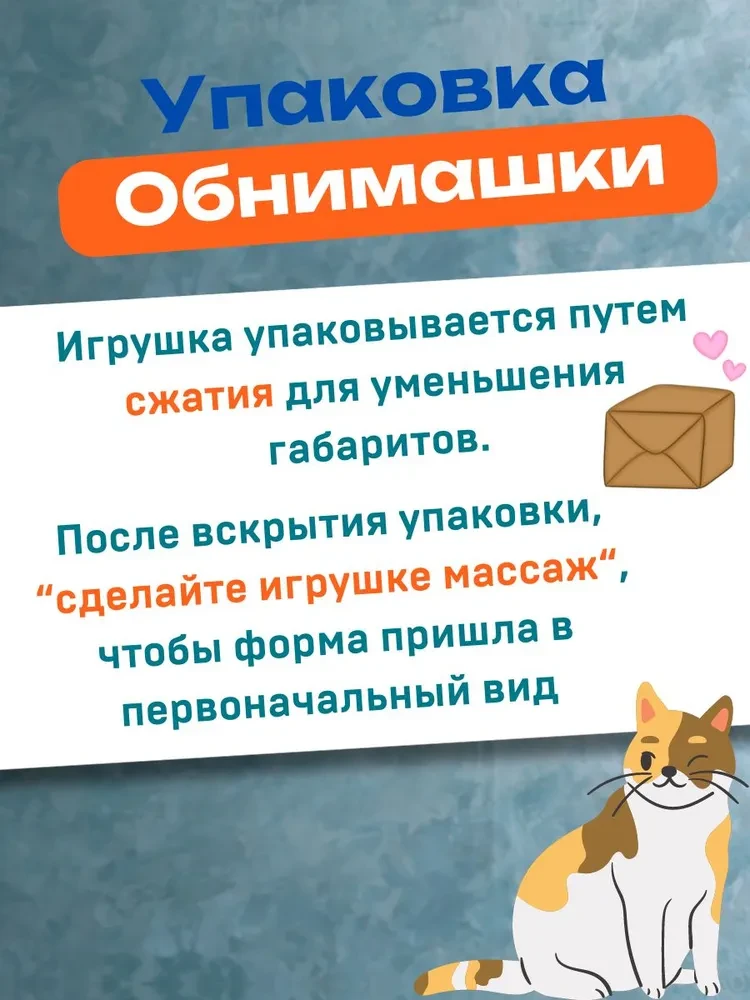Подарите вашему ребенку незабываемые моменты радости с мягкой игрушкой-обнимашкой Котенком. Эта плюшевая игрушка станет не только верным другом, но и настоящим спутником в играх и приключениях. Мягкий и приятный на ощупь котенок идеально подходит для обниманий, что делает его отличным подарком для девочек и мальчиков любого возраста. Котенок выполнен из высококачественных материалов, что гарантирует долговечность и безопасность для вашего малыша. Его милый внешний вид и яркие цвета привлекут внимание не только детей, но и взрослых. Котик отлично подходит для ролевых игр, где ваш ребенок сможет создавать свои собственные истории и приключения. Подарите своему ребенку возможность обниматься с любимым другом, который станет не только игрушкой, но и источником положительных эмоций. Мягкая игрушка-обнимашка Котенок — это не просто предмет, а настоящая находка для всех любителей уюта и тепла. Не упустите шанс сделать подарок, который запомнится на долгие годы и станет символом детства вашего малыша. Отличный подарок на любой праздник взрослому, ребенку и малышам. Можно использовать как подушку-антистресс и подушку-обнимашку.