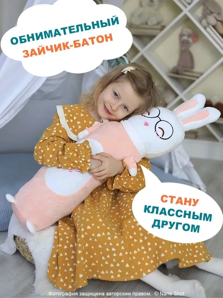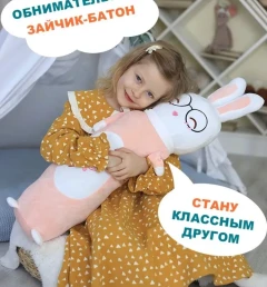 Хотите порадовать своих близких подарком? Плюшевый заяц-обнимашка - идеальный выбор. Игрушка обнимашка выполнен из высококачественных материалов, безопасных для здоровья малышей. Он мягкий и приятный на ощупь, что делает его идеальным для обнимашек и игр. Благодаря яркому дизайну и привлекательным цветам, этот заяц станет любимой игрушкой вашего ребенка. Эта игрушка батон подходит как для мальчиков, так и для девочек, а также для подростков и взрослых. Игрушку легко стирать, наполнитель можно достать через специальное отверстие на молнии. Плюшевый заяц-обнимашка такой же мимимишный как кот батон или котик подушка, он может стать отличным подарком на день рождения, Новый год, его можно подарить просто как знак внимания. Не упустите возможность порадовать своих близких прекрасным подарком! Игрушка для сна обнимашка будет комфортна и удобна.