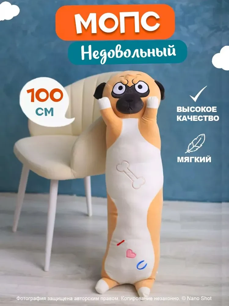 Недовольный, но такой милый! Представляем Вашему вниманию уникальную мягкую плюшевую игрушку-обнимашку, которая станет незаменимым другом для вашего ребенка! Этот милый недовольный мопс идеально подходит как для девочек, так и для мальчиков. Игрушка выполнена из высококачественного материала, что делает ее мягкой и приятной на ощупь. Она станет отличным подарком на любой праздник, будь то день рождения или новогодние торжества. Взрослым такой оригинальный подарок понравится тоже, он вызовет массу положительных эмоций. Мягкая собачка поможет развивать воображение ребенка, с песиком можно играть в ролевые игры, а также игрушка станет отличным антистрессом для взрослых. Дети смогут играть с ней в свои любимые игры, устраивать настоящие приключения, используя игрушку в качестве персонажа. Уход за игрушкой не составит труда, на собачке есть потайная молния, которую можно расстегнуть и достать наполнитель. Эта игрушка станет отличным дополнением к детскому набору для игр. Ее можно использовать в сочетании с другими игрушками, такими как конструкторы, куколки или машинки. Не упустите возможность приобрести эту милую плюшевую игрушку-обнимашку. Она станет не только любимой игрушкой вашего ребенка, но и прекрасным элементом декора в детской комнате. Закажите очаровательного мопса и подарите ребенку радость и уют, которые принесет этот замечательный мопс!