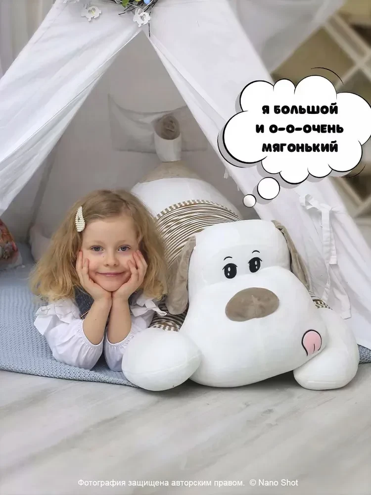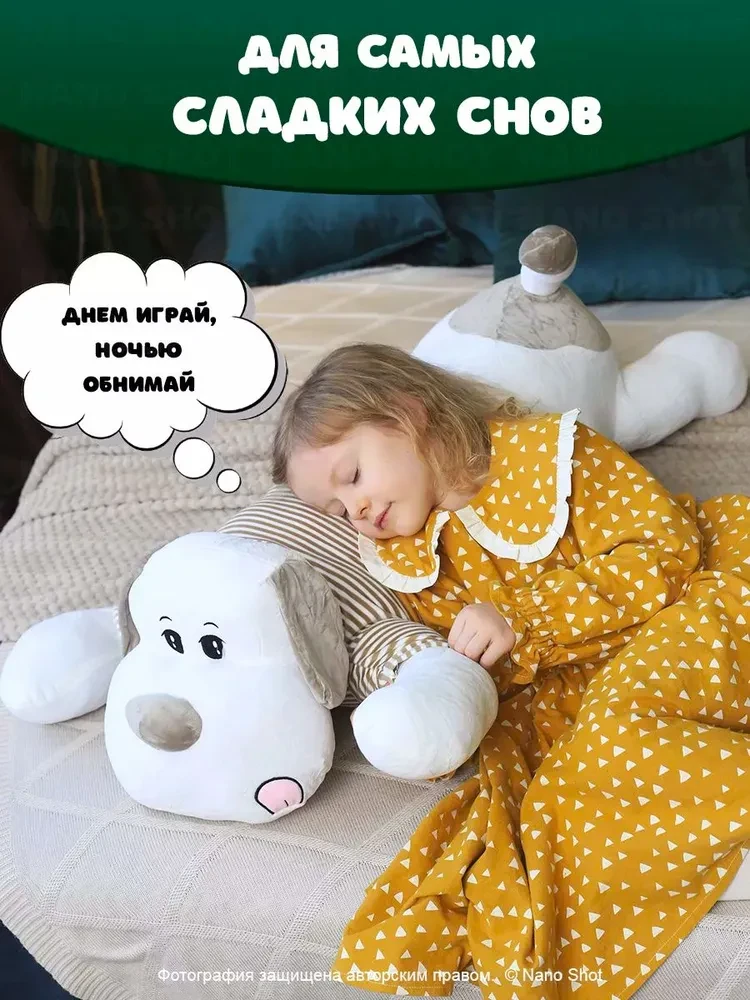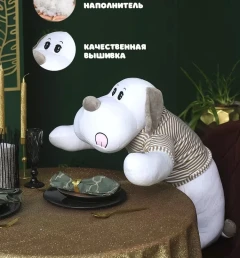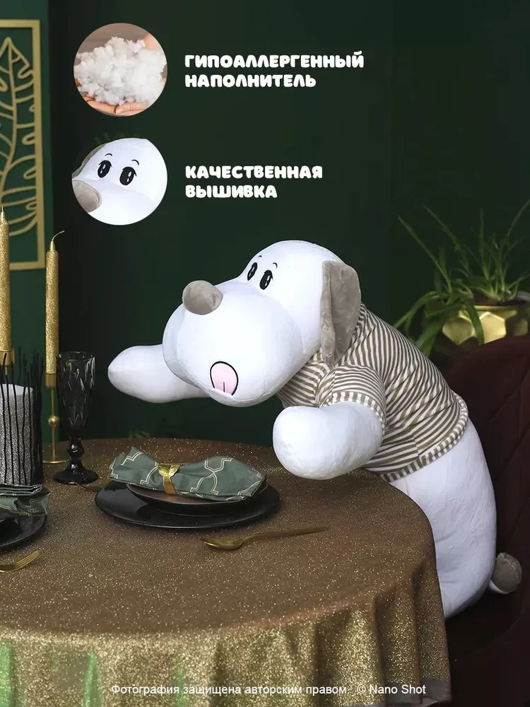 В поисках классного подарка для родных и близких или для ребенка? Обратите внимание на нашу мягкую плюшевую игрушку- обнимашку- собаку в свитере, 130 см. Эта игрушка станет не только милым товарищем в играх, но и верным другом, который подарит Вашему ребенку тепло и уют. Изготовленная из качественного, мягкого и безопасного материала, собачка подходит для девочек и мальчиков, для подростков и взрослых. Этот плюшевый друг отлично подходит для обнимашек и станет любимым персонажем в играх Вашего ребенка. Мягкие лапки и дружелюбная мордочка щенка создают атмосферу комфорта. Она может стать не только игрушкой для ребенка, но и настоящим антистрессом, помогая расслабиться и успокоиться после активного дня. Плюшевая собака в свитере станет прекрасным дополнением к детской комнате. Ее милый дизайн легко впишется в любой интерьер. Подарите Вашему ребенку возможность обниматься с этим милым питомцем, и вы увидите, как его улыбка станет еще шире. Не упустите шанс порадовать своих близких или сделать замечательный подарок на день рождения, праздник или про так. Выбирайте лучшее, и пусть каждый день Вашего ребенка будет наполнен счастливыми моментами с любимыми игрушками!