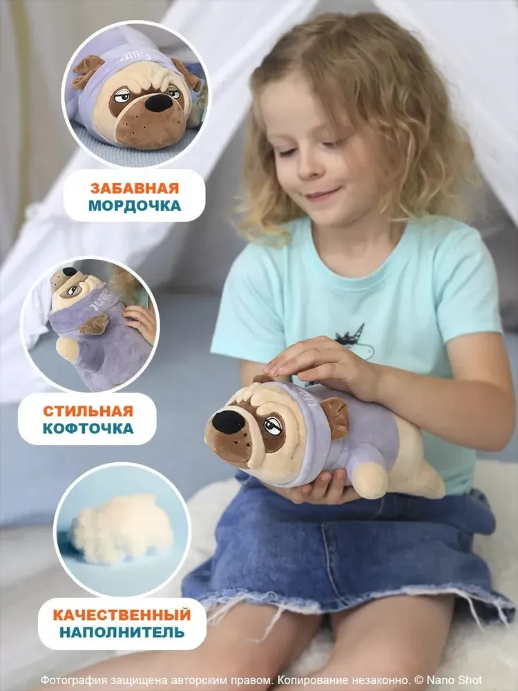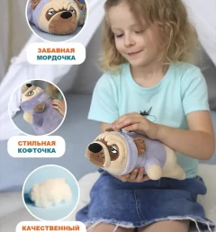 Ищете идеальный подарок для любителей собачек? Представляем Вам мягкую игрушку мопса в костюме - плюшевую игрушку, которая станет отличным другом. Этот милый мопс подойдет как мальчикам, так и девочкам, это классный подарок и взрослым. Мягкая игрушка бульдог не оставит Вас равнодушным, у неё милая мордочка, яркий костюмчик. Кроме этого, эта игрушка выполняет функцию антистресса, подобно волшебной подушке. Она поможет Вам расслабиться, снять напряжение и усталость после трудного дня. А еще, обратите внимание, насколько удобно спать в объятиях этого французского бульдога. Его мягкость и теплота создадут идеальные условия для сна и приятного отдыха. Не упустите возможность обладать этой волшебной мягкой игрушкой, которая привнесет радость, комфорт и волшебство в вашу жизнь. Порадуйте себя или близких этим прекрасным подарком прямо сейчас!