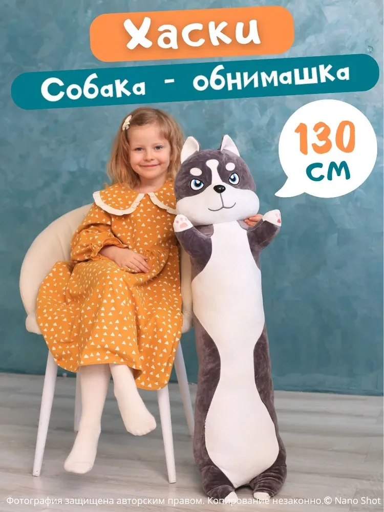Мягкая плюшевая игрушка собака-батон-багет Хаски, 130 см