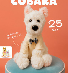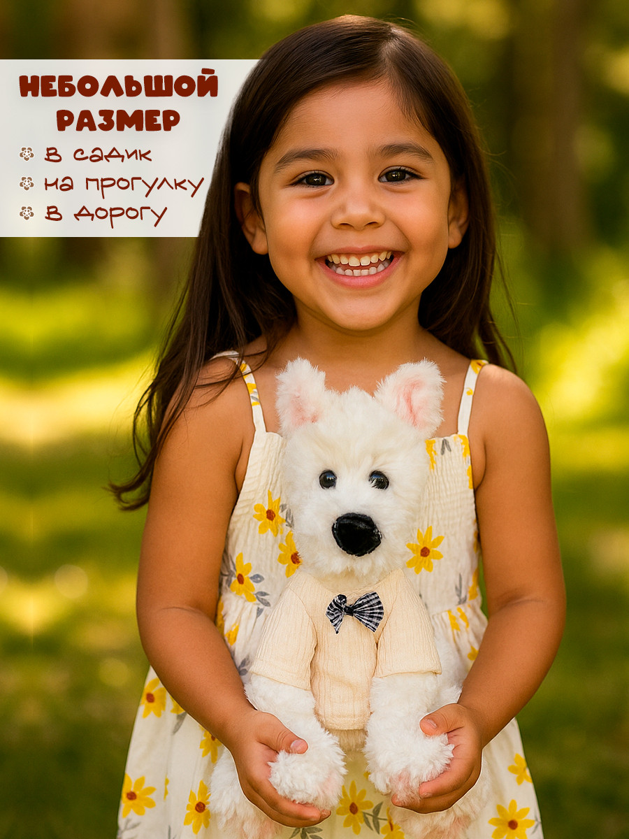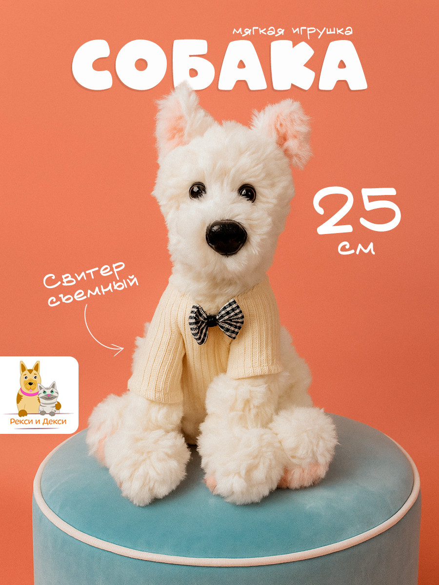 Мягкая плюшевая игрушка обнимашка Cобака в свитере 25 см, белая