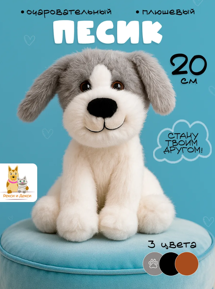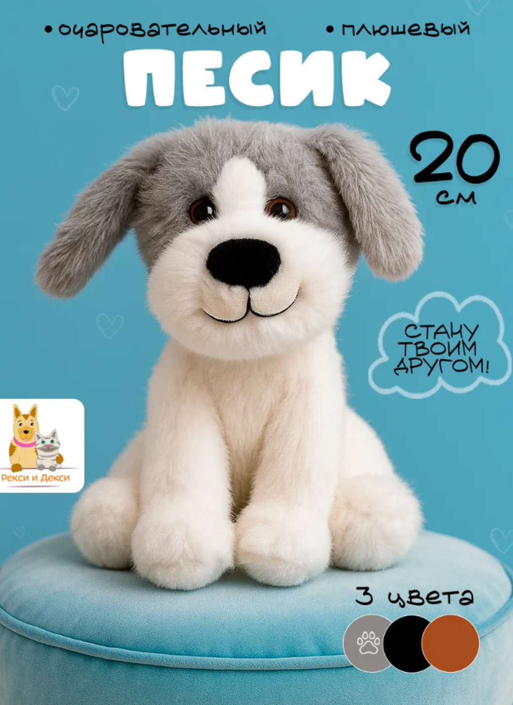 Плюшевая собака высотой 20 см станет классным сюрпризом для ваших близких. Её продуманный дизайн и реалистичные детали вызывают восторг у детей и взрослых. Наполнитель из синтепуха гарантирует, что игрушка сохранит свою форму даже после длительного использования, обеспечивая долгие годы радости.