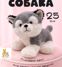 Мягкая плюшевая игрушка обнимашка собака 25 см, серая