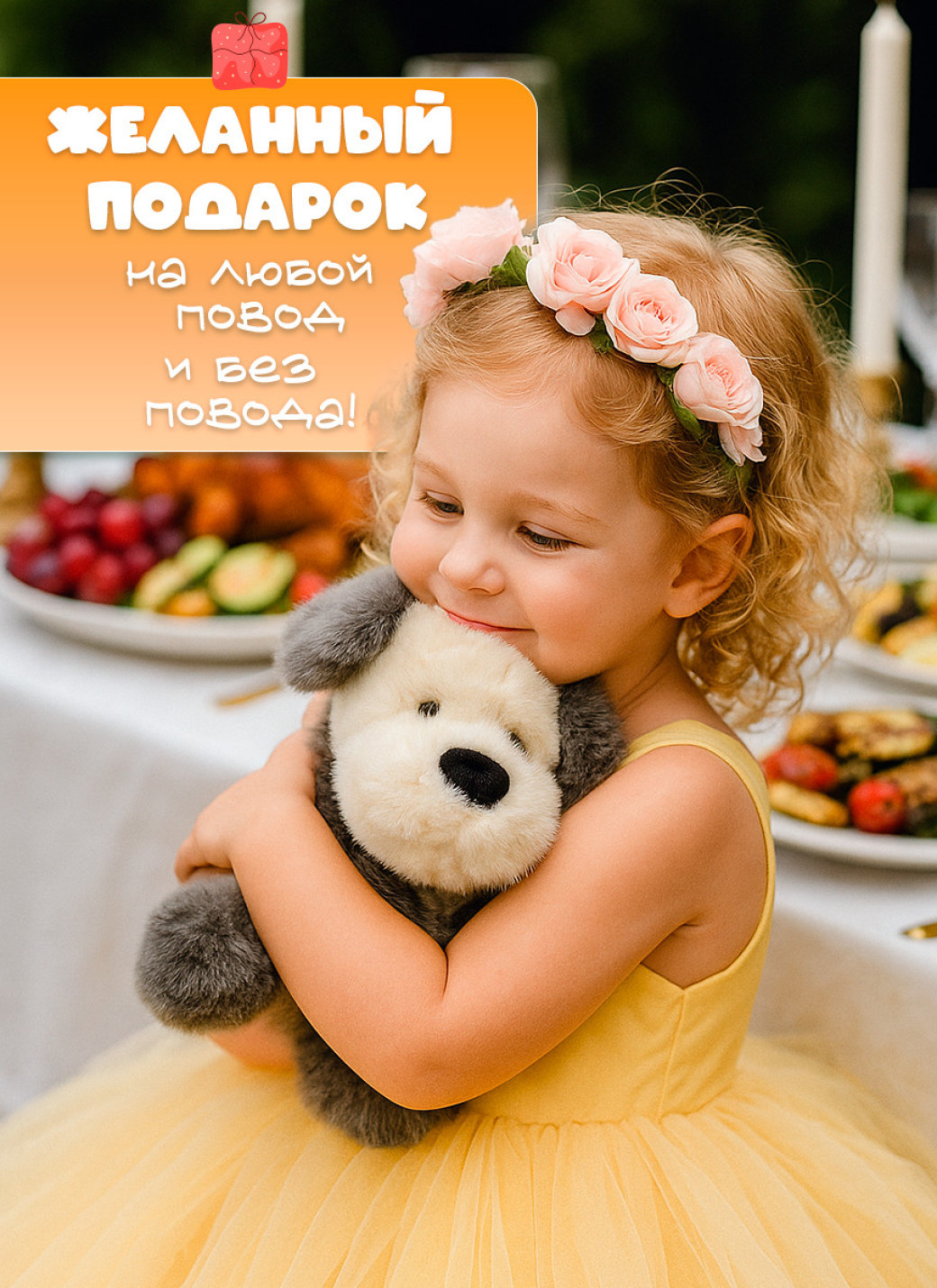 Пёсик идеального размера — 30 см тепла и уюта — станет верным другом для малыша, поддержит в грустный день и всегда будет рядом в моменты радости.