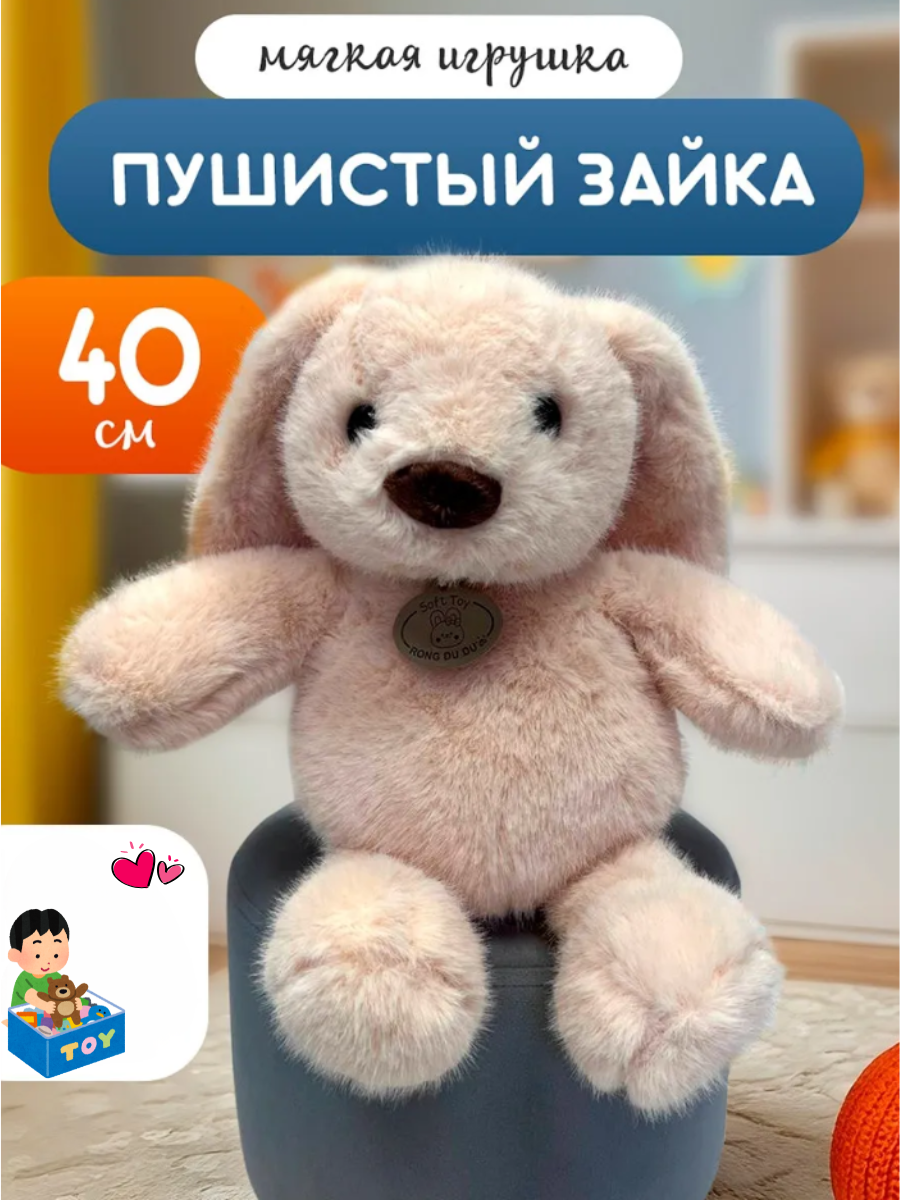 Мягкая плюшевая игрушка Зайчик бежевый, 40 см