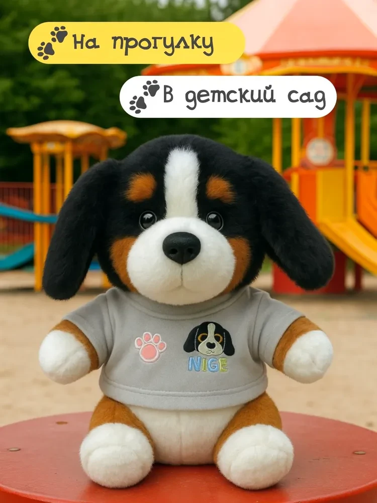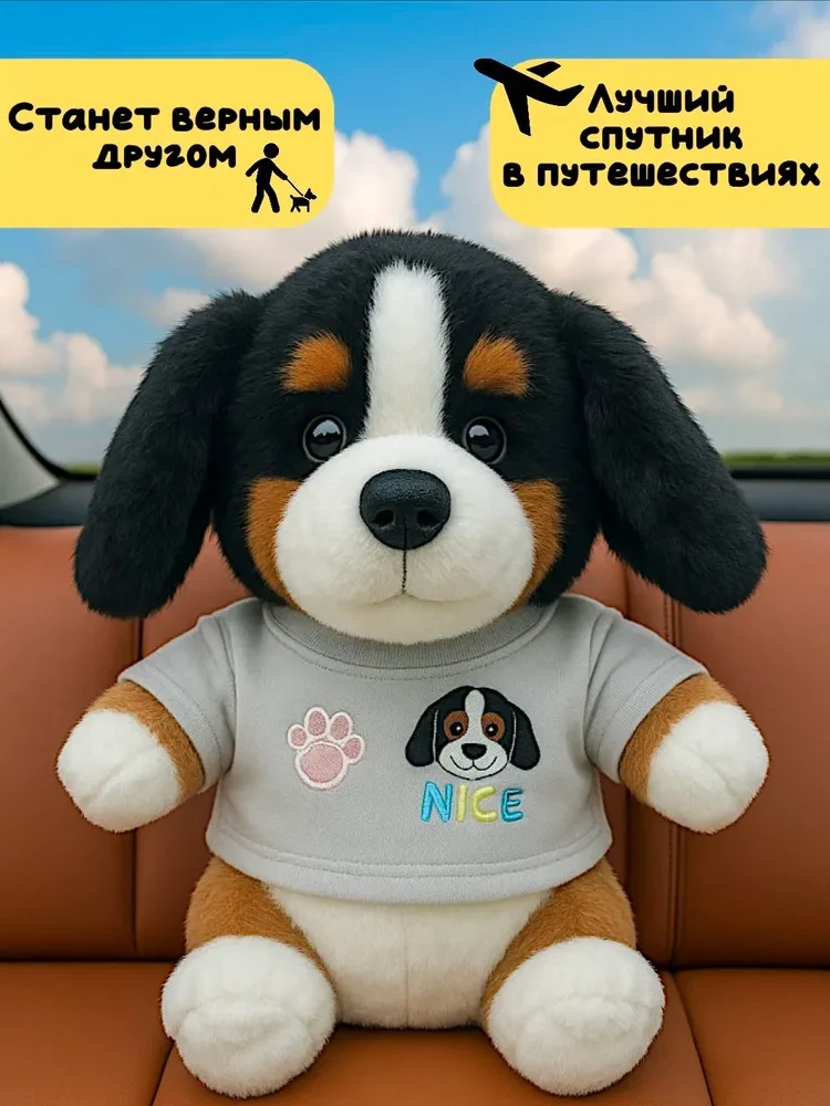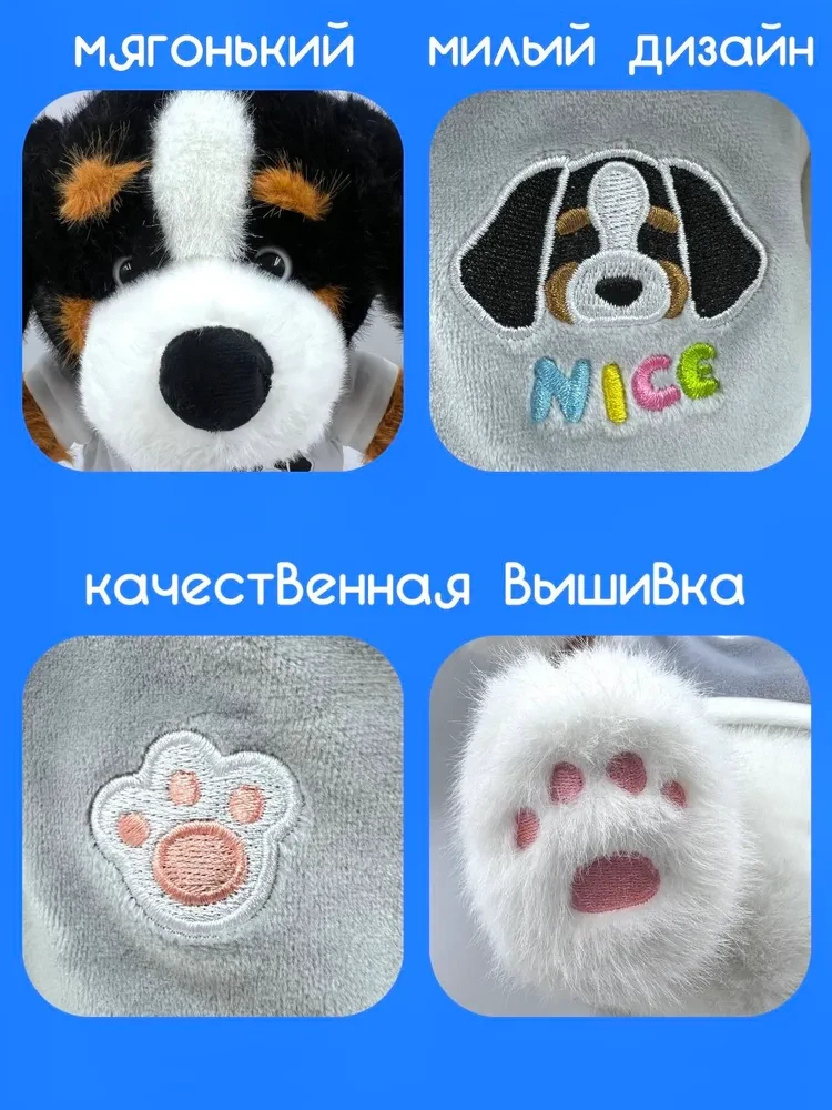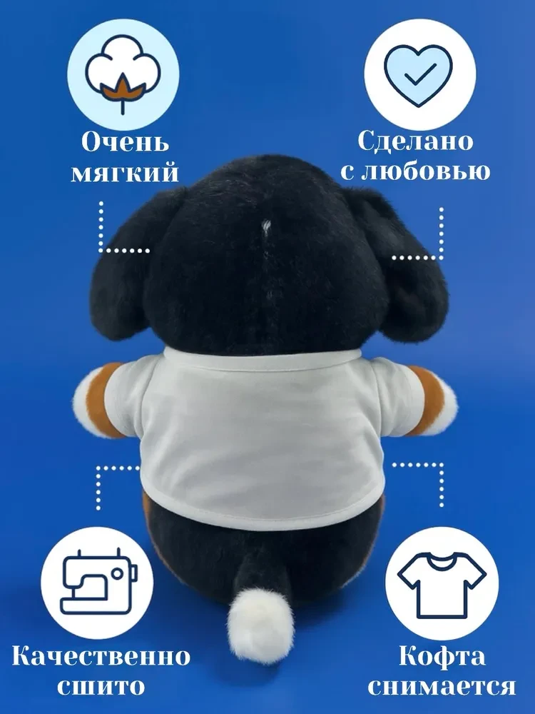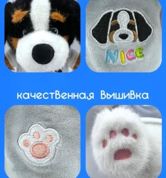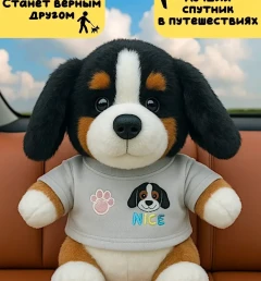 Мягкая игрушка собака выполнена из мягкого материала, который приятен на ощупь и безопасен для детей.