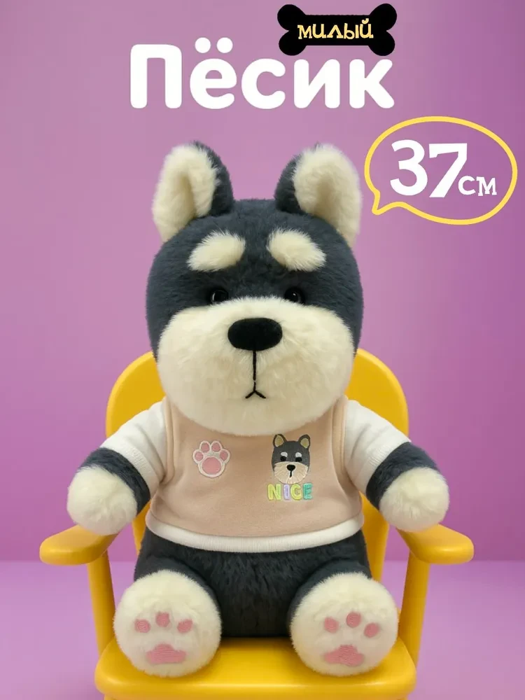 Мягкая игрушка собака выполнена из мягкого материала, который приятен на ощупь и безопасен для детей.