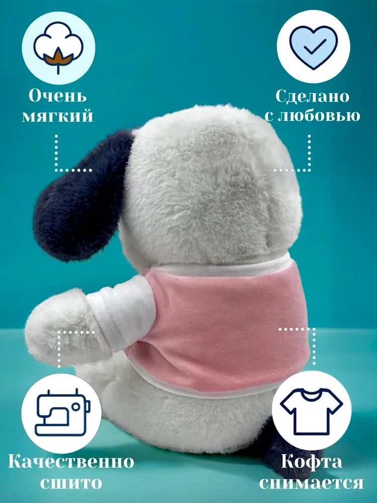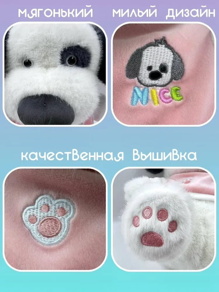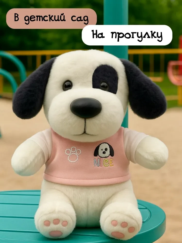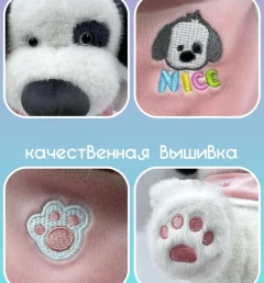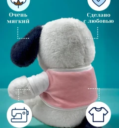 Мягкая игрушка собака выполнена из мягкого материала, который приятен на ощупь и безопасен для детей.