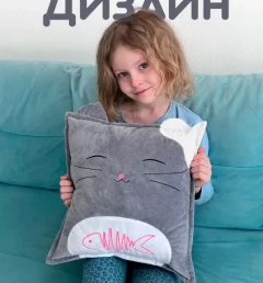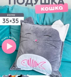 Декоративная Подушка Кот 35х35, тёмно-серая