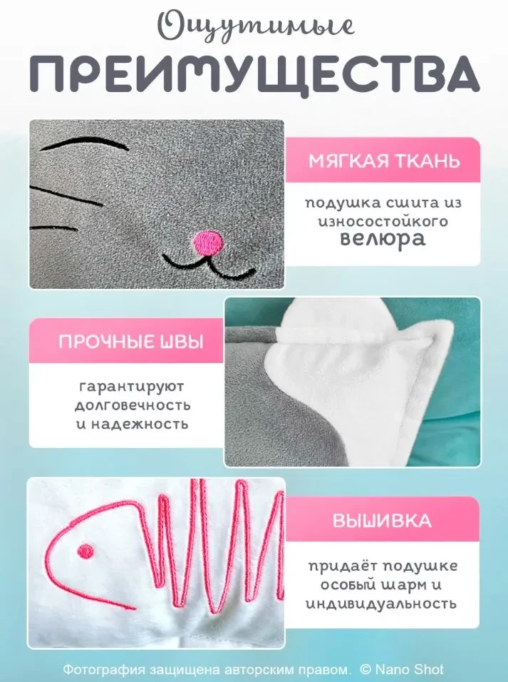 Представляем вашему вниманию уникальную декоративную подушку в виде кота, которая станет не только стильным элементом интерьера, но и верным спутником в ваших путешествиях. Размер 35х35 см делает её идеальной для использования в различных условиях: будь то уютный диван, кровать или автомобиль. Эта подушка обнимашка прекрасно подходит как для взрослых, так и для детей, создавая атмосферу уюта и комфорта. Подушка кошка выполнена из мягких и приятных на ощупь материалов, что делает её отличным выбором для детской комнаты. Она станет не только декоративным элементом, но и любимой игрушкой для вашего малыша. Кошачьи ушки добавляет подушке особый шарм, а разнообразие в 4 цветах позволяет выбрать именно тот вариант, который идеально впишется в ваш интерьер. Эта подушка для сна обеспечит вам комфортный отдых, а также станет отличным аксессуаром для путешествий. Легкая и компактная, она легко помещается в сумку или рюкзак, что делает её незаменимой в поездках. Подушка в машину поможет создать уютную атмосферу во время длительных поездок, а на диване или кровати она станет стильным акцентом, подчеркивающим ваш вкус. Декоративная подушка в виде кота — это не просто предмет интерьера, а настоящая находка для тех, кто ценит комфорт и стиль. Она отлично подходит для создания уютной обстановки в детской, а также станет оригинальным подарком для любителей кошек. Подушки на кровать для интерьера, такие как эта, способны преобразить любое пространство, добавив ему индивидуальности и тепла. Выбирая подушку обнимашку для сна, вы получаете не только красивый аксессуар, но и практичное решение для вашего комфорта. Мягкая и приятная на ощупь, она станет вашим верным спутником в любых ситуациях. Не упустите возможность добавить в свой дом этот милый и функциональный элемент, который будет радовать вас и ваших близких каждый день.