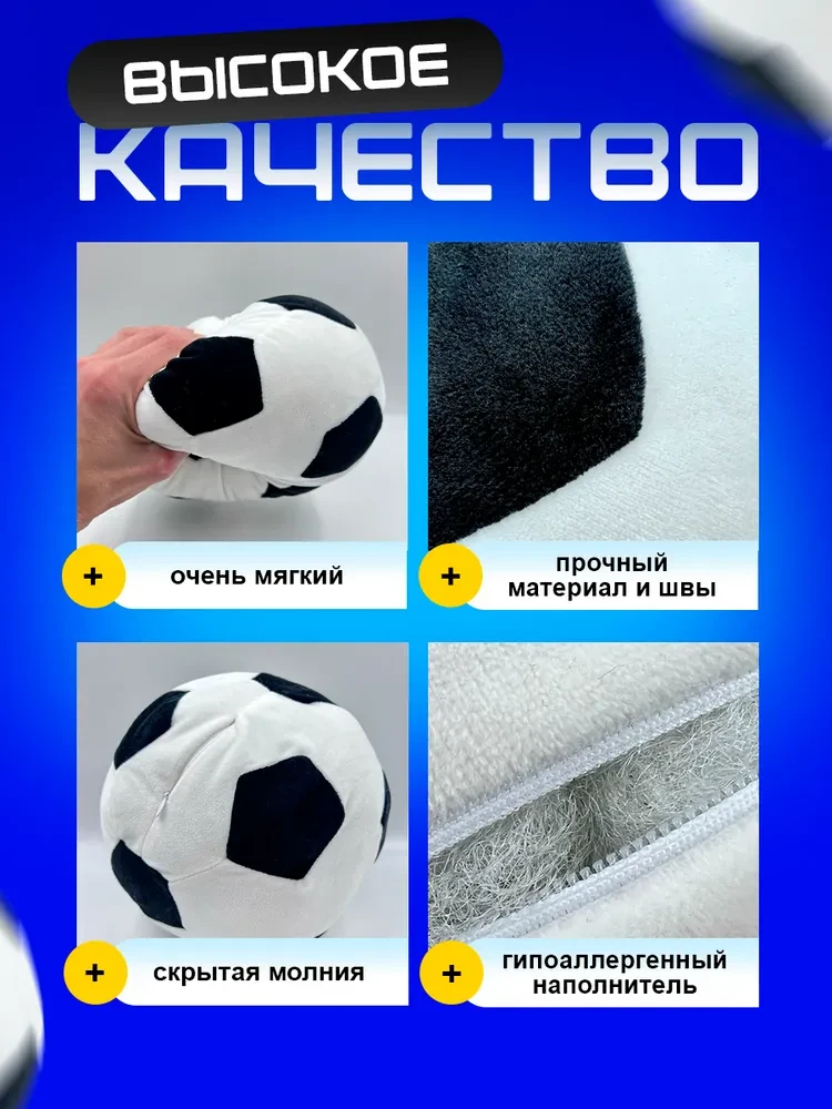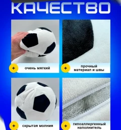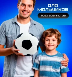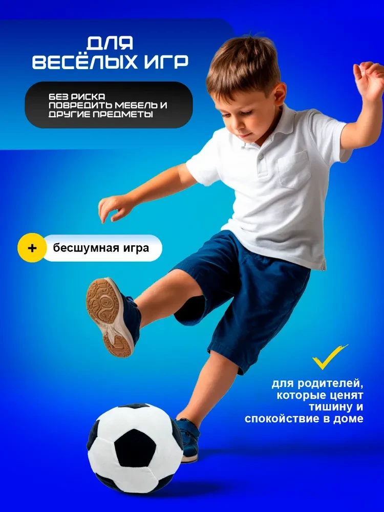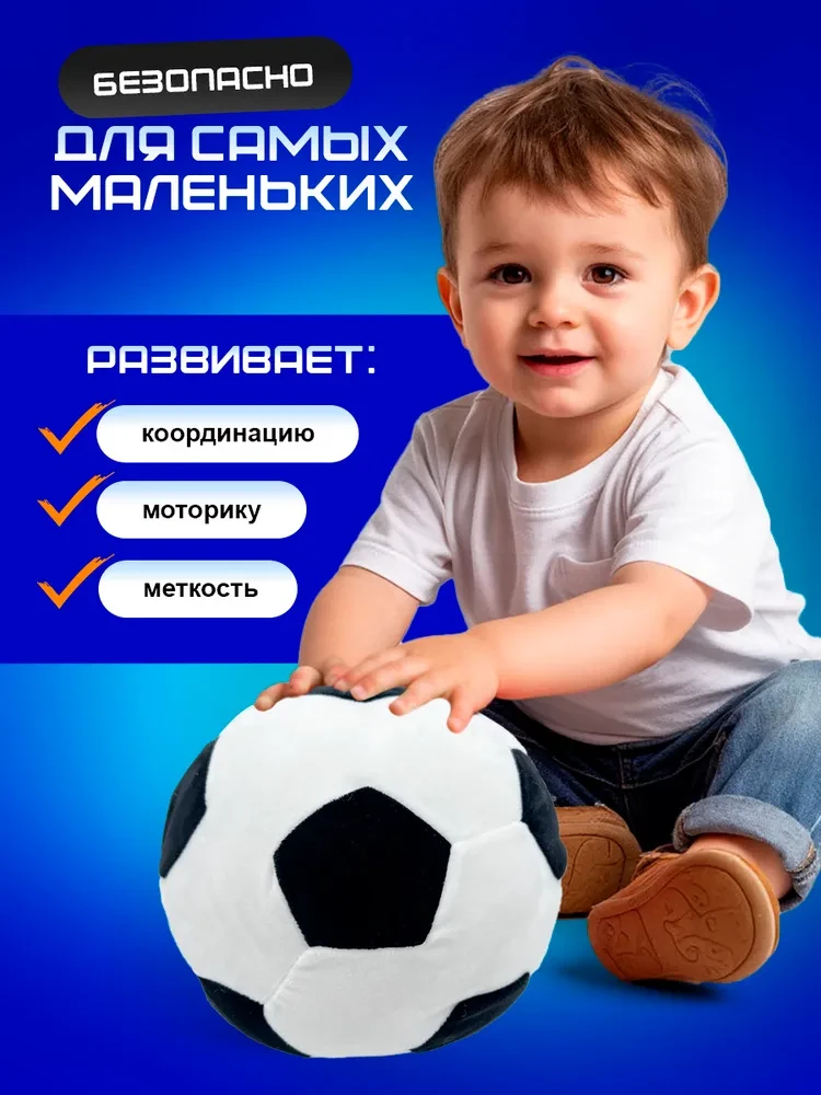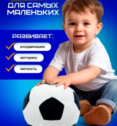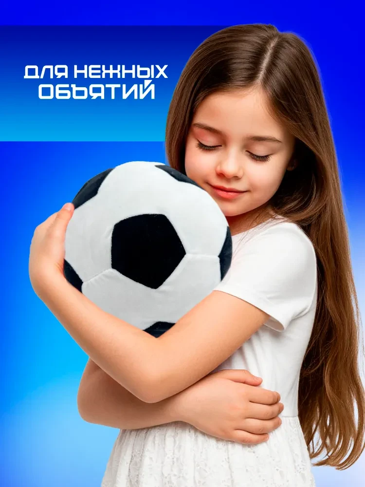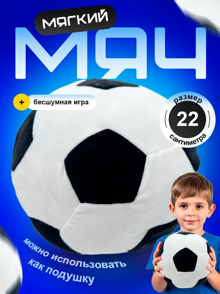 Игрушечный мягкий футбольный мячик идеально подойдет для детей и любителей спортивных игр. Мяч выполнен в плюшевой текстуре, что делает его безопасным для малышей и младенцев. Благодаря наполнителю средней плотности игрушка подходит для занятий дома, игр на стенку или активностей вместе с друзьями. Вес изделия невелик, что позволяет ребенку легко держать его в руках, а шумом мяч не раздражает окружающих. Диаметр мяча 22см. Эта оригинальная развивающая игрушка помогает тренировать мозг, улучшая реакции ребенка через игры и развлечения. Используйте мяч подушку для детей как аксессуар для спортивного развития мальчиков и девочек, или же как недорогой подарок маленьким футболистам. Форма мяча приближена к обычным футбольным моделям, но выполнена в красивом игровом стиле с яркими элементами. Подходит как для домашнего использования, так и в качестве сувенира на тему спорта. Прекрасный выбор для тех, кто ищет недорогие развивающие игрушки или милые предметы для детских игр без риска травм.