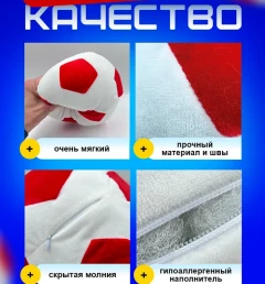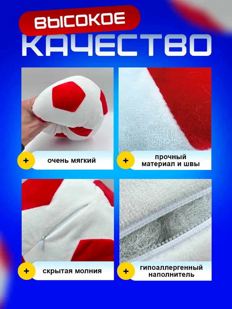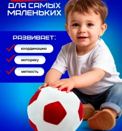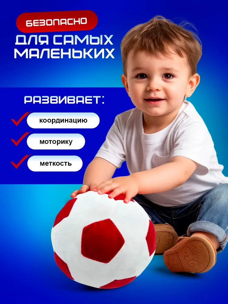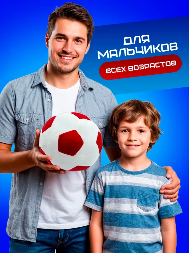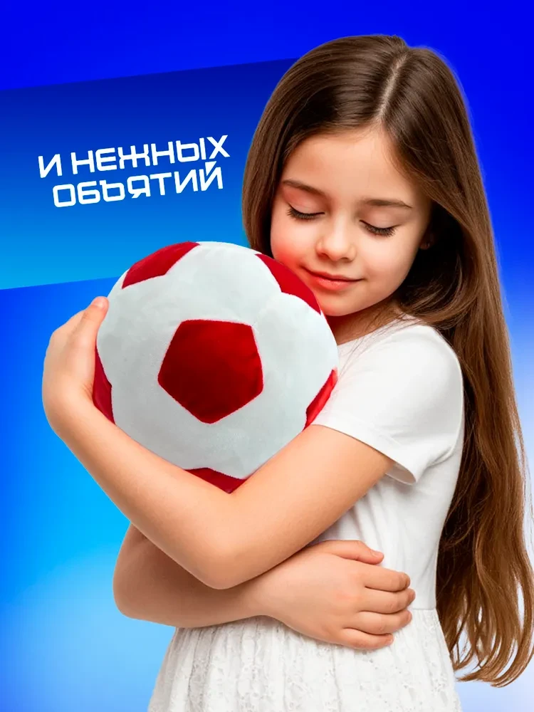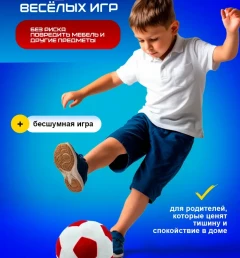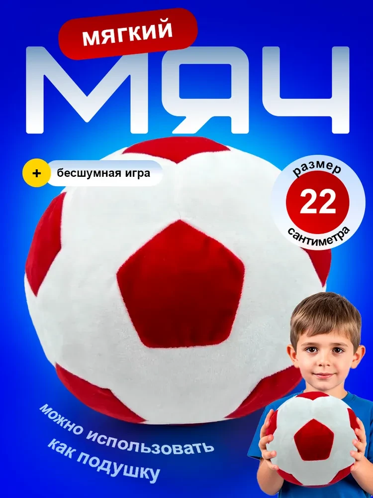 Игрушечный мягкий футбольный мячик идеально подойдет для детей и любителей спортивных игр. Мяч выполнен в плюшевой текстуре, что делает его безопасным для малышей и младенцев. Благодаря наполнителю средней плотности игрушка подходит для занятий дома, игр на стенку или активностей вместе с друзьями. Вес изделия невелик, что позволяет ребенку легко держать его в руках, а шумом мяч не раздражает окружающих. Диаметр мяча 22см. Эта оригинальная развивающая игрушка помогает тренировать мозг, улучшая реакции ребенка через игры и развлечения. Используйте мяч подушку для детей как аксессуар для спортивного развития мальчиков и девочек, или же как недорогой подарок маленьким футболистам. Форма мяча приближена к обычным футбольным моделям, но выполнена в красивом игровом стиле с яркими элементами. Подходит как для домашнего использования, так и в качестве сувенира на тему спорта. Прекрасный выбор для тех, кто ищет недорогие развивающие игрушки или милые предметы для детских игр без риска травм.