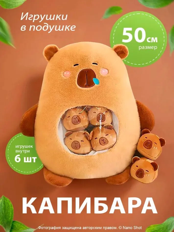 Плюшевая мягкая игрушка в виде капибары — это идеальное сочетание декоративных элементов и функциональности. Эта игрушка станет отличным дополнением к коллекции мягких игрушек, а также послужит в качестве подушки для комфортного отдыха. Изготовленная из высококачественного мягкого материала, она обеспечивает максимальный комфорт и приятные тактильные ощущения. Игрушка капибара выполнена в забавном дизайне, который понравится как мальчикам, так и девочкам. Благодаря своей универсальности, она может стать отличным подарком для детей и взрослых. Плюшевые игрушки, такие как эта капибара, популярны среди маленьких и больших любителей мягких игрушек. Они не только украшают интерьер, но и служат отличным средством для снятия стресса и расслабления. Эта мягкая игрушка капибара может использоваться как подушка, что делает её функциональной и практичной. Внутри подушки находится мягкий наполнитель, который позволяет ей сохранять форму и обеспечивать комфорт при использовании. Большая подушка в виде капибары станет отличным решением для обнимашек и отдыха. Декоративные элементы на игрушке, такие как ушки и носик, придают ей милый и привлекательный вид. Маленькие детали, выполненные с высокой точностью, делают эту игрушку одной из самых популярных среди аналогичных товаров. Это идеальный подарок для девочек и мальчиков в возрасте от 3 до 11 лет, который принесет только положительные эмоции. Эта плюшевая капибара — это не просто подушка, а настоящий элемент уюта и комфорта в вашем доме. Она станет отличным подарком для любого случая, будь то день рождения или просто желание порадовать близкого человека. Вытянуть удовольствие от использования этой игрушки можно в любое время, наслаждаясь её мягкостью и уютом.