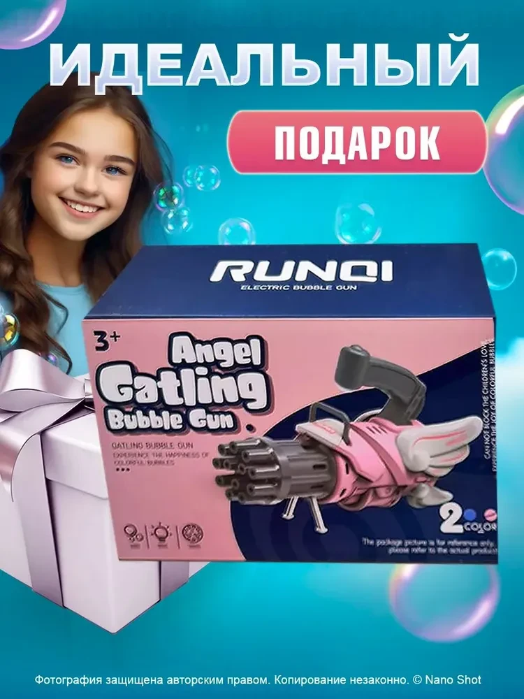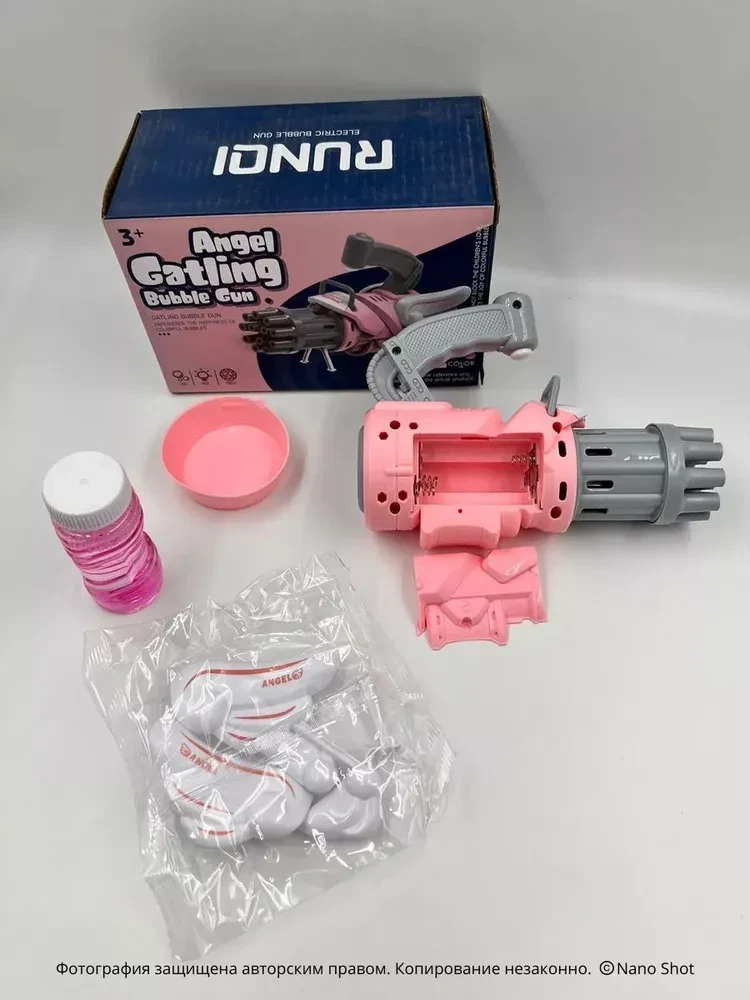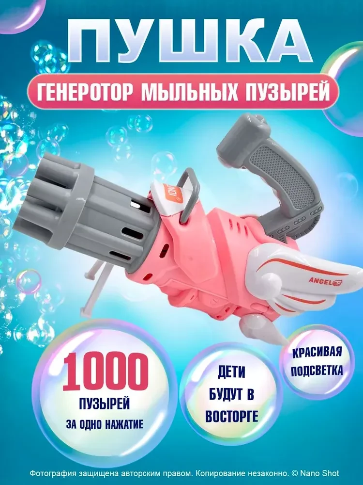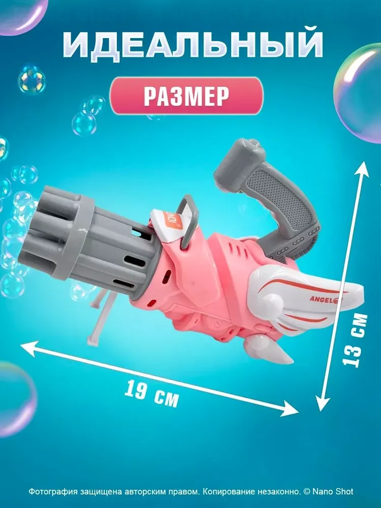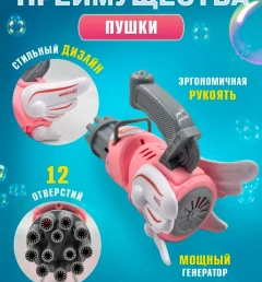 Представляем Вашему вниманию невероятно легкую воздушную игрушку пушку-генератор мыльных пузырей . Генератор мыльных пузырей - пулемет для запуска мыльных пузырей очень удобно лежит в руке, кажется невесомой и воздушной, образуя по-настоящему большое облако мыльных пузырей. Сотни мыльных шариков пускаются в воздух при одном лишь нажатии на кнопку, от такого занятия будет сложно оторваться не только ребенку, но и взрослому. Мыльные пузыри - одна из любимых забав детей. Что может быть веселее, чем устроить мыльное шоу с пузырями или мыльные перестрелки, обстреливая своих соперников каскадом маленьких пузырьков! Так же Генератор может порадовать и взрослых.
