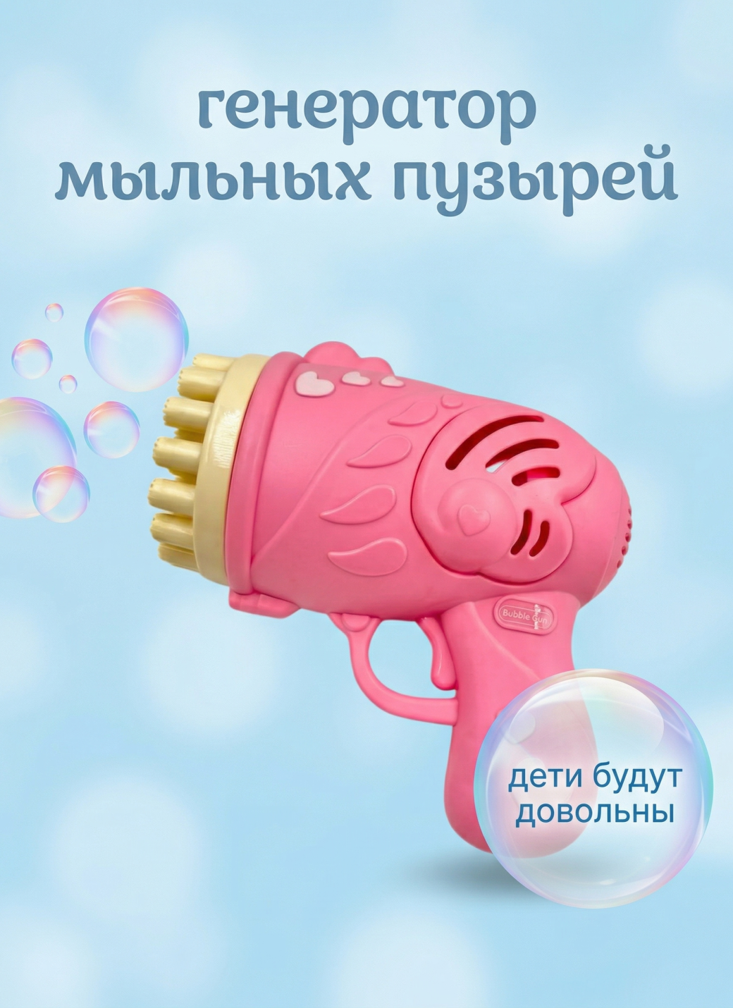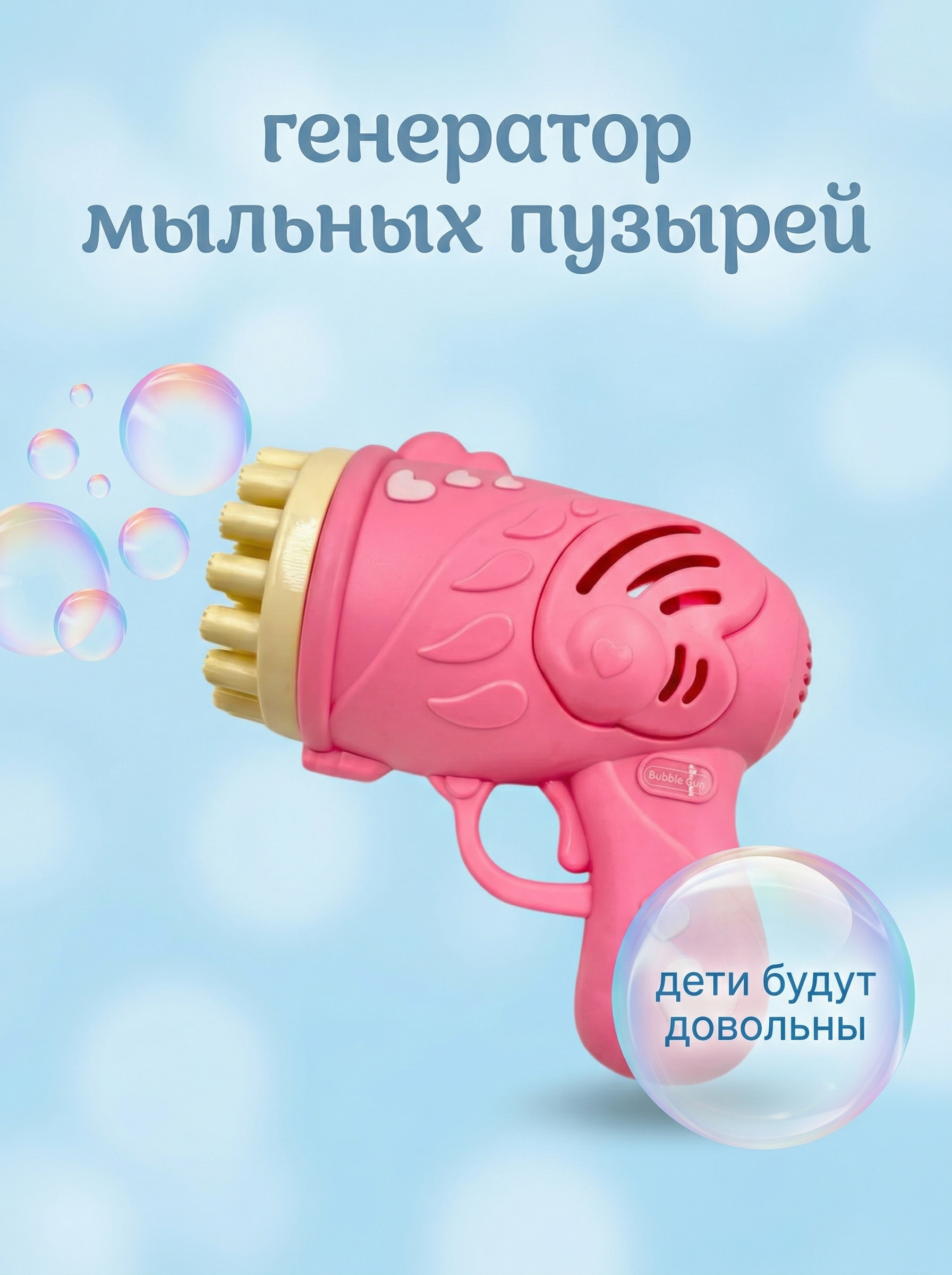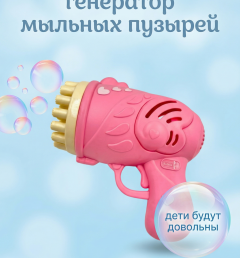 Пушка-генератор мыльных пузырей от батареек, розовая
