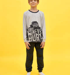 Стильный, уютный комплект, приятных оттенков без утеплителя и начеса. Подойдёт как домашняя одежда так и для для сна и отдыха. Комплект состоит из футболки с длинным рукавом и штанов свободного кроя на манжете, выполненных из мягкого трикотажа.