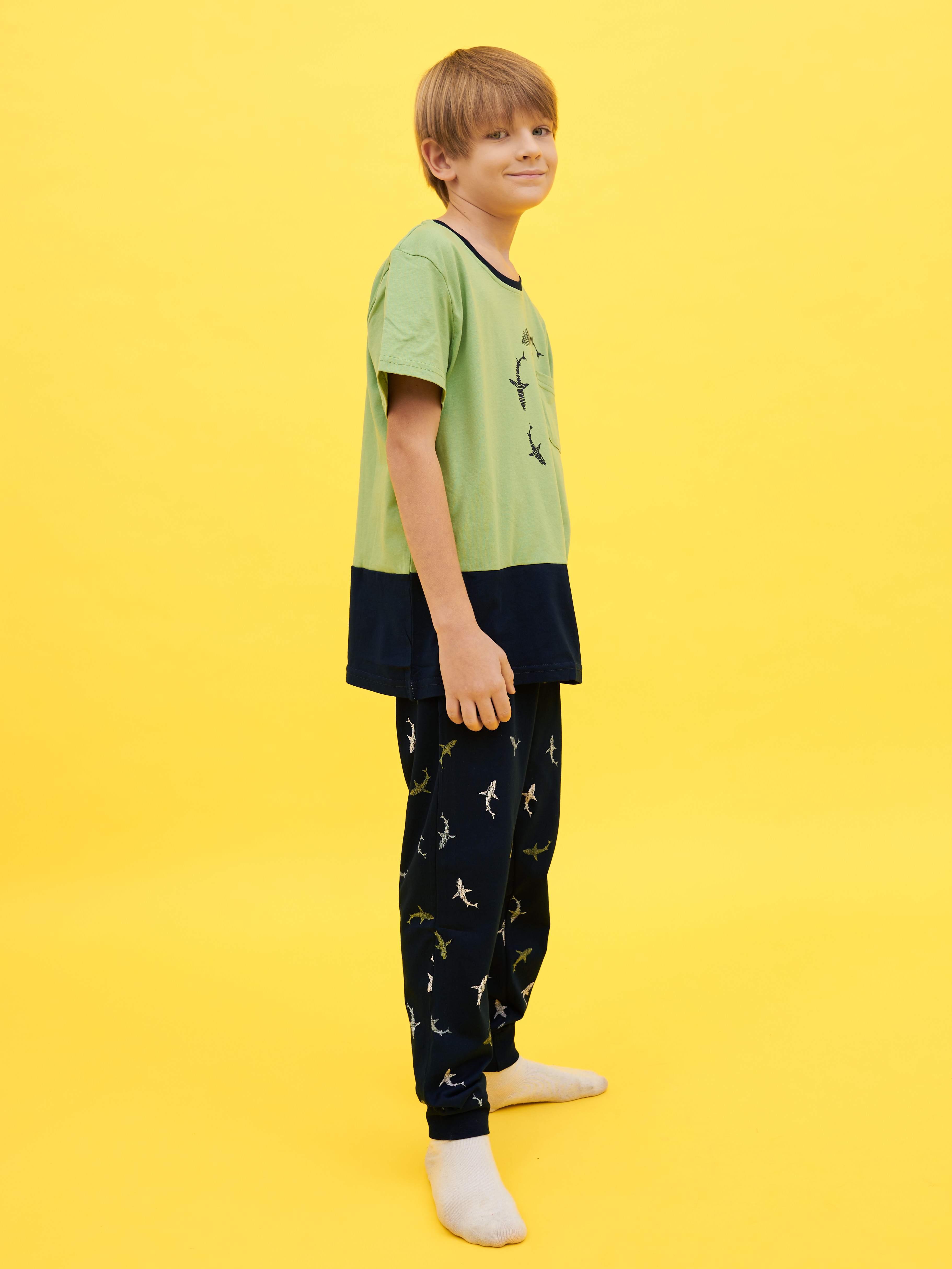 Комплект состоит из футболка с коротким рукавом и штанов на манжете . Выполнена из 100% хлопка, пошив высочайшего качества, удобный крой, не будет вызывать дискомфорт или сковывать движения. Футболка и шорты не растягивается и не теряет форму, отлично зарекомендовала себя при активном использовании.