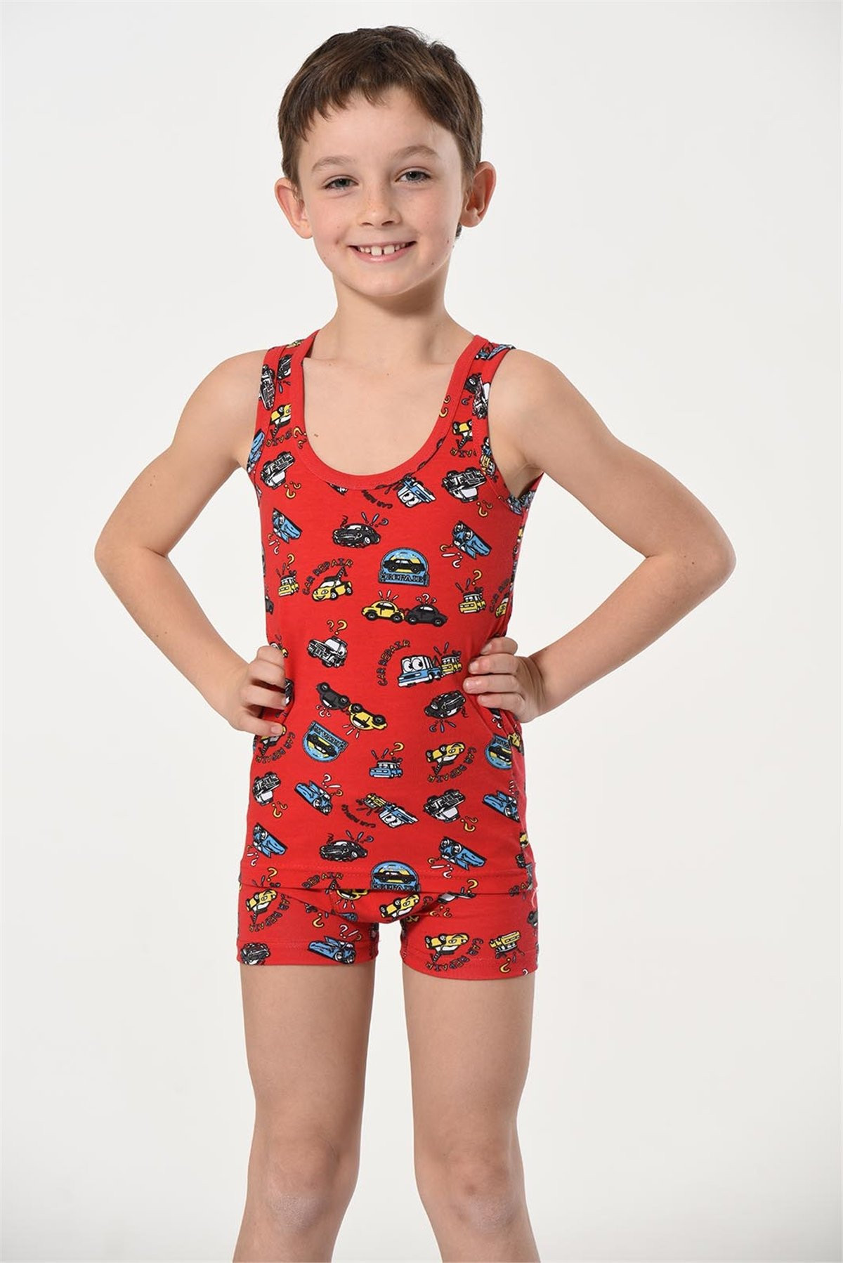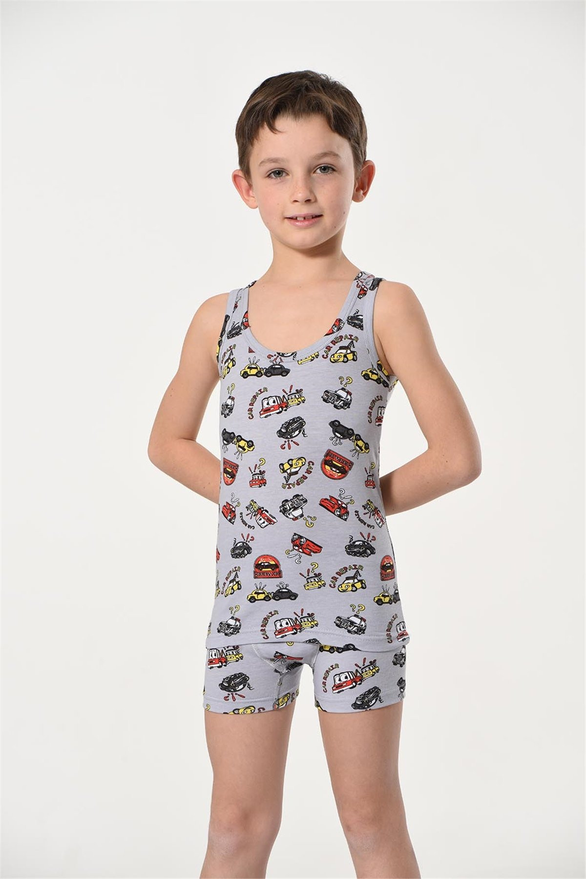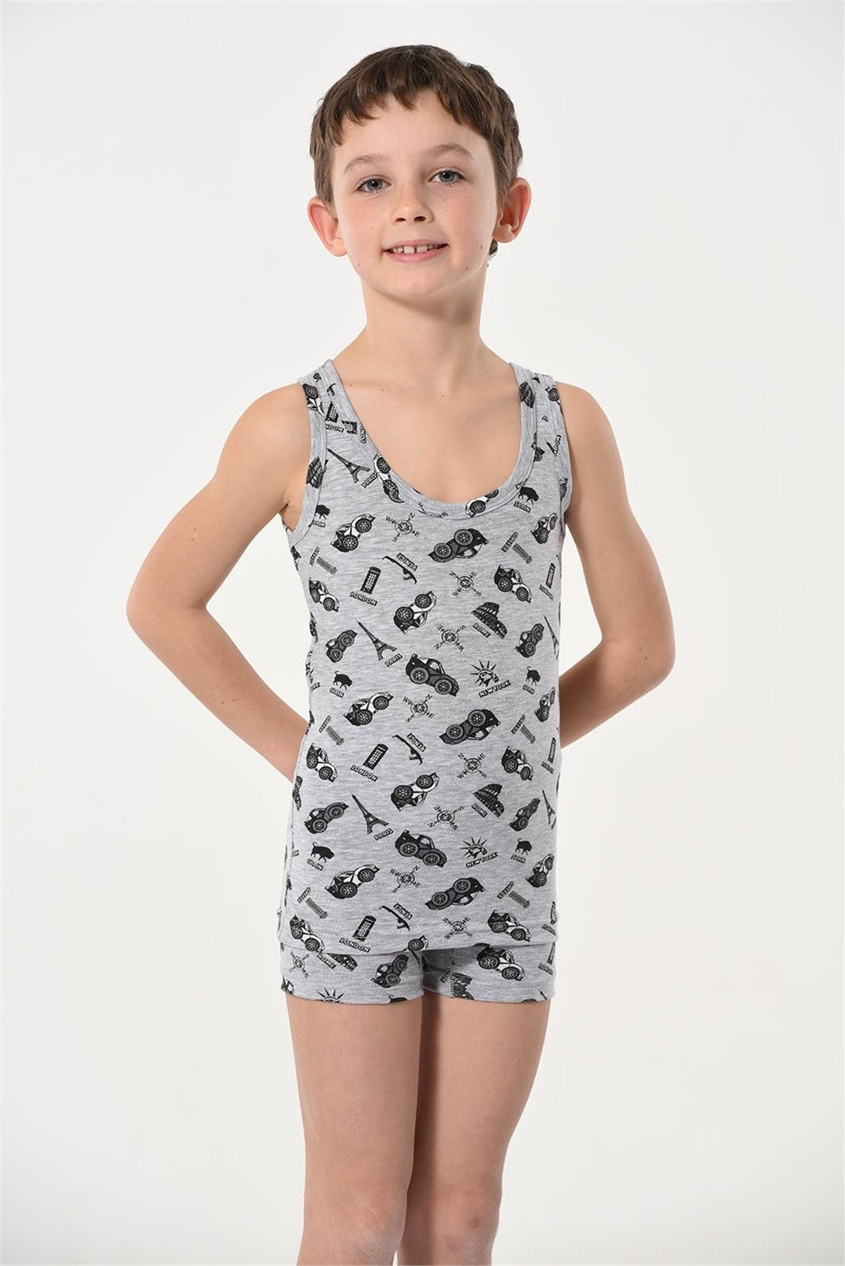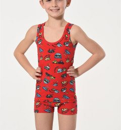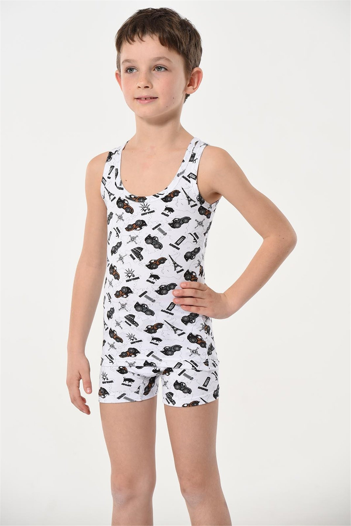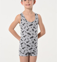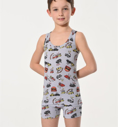 Комплект состоит из майки с широкими плечиками и трусиков боксеров.