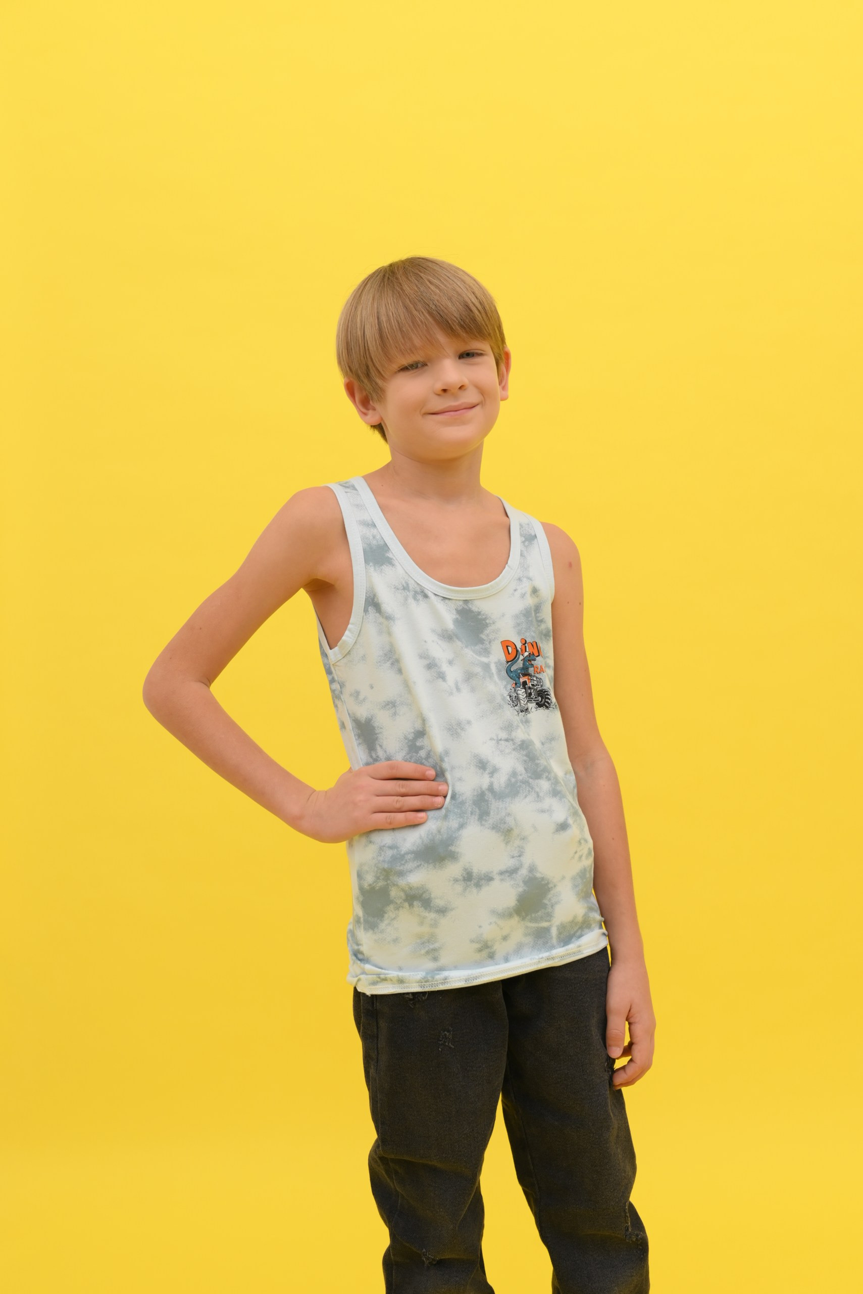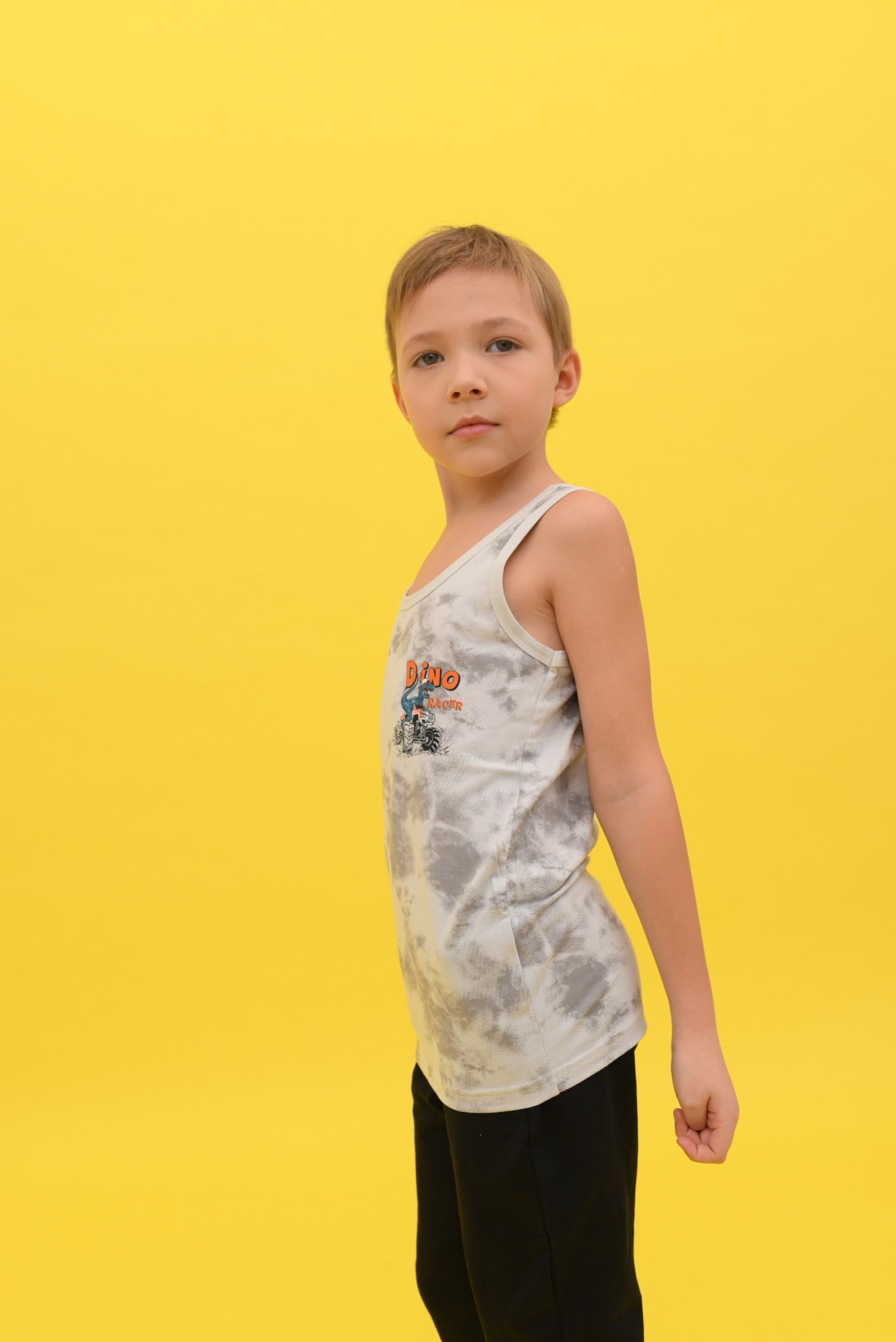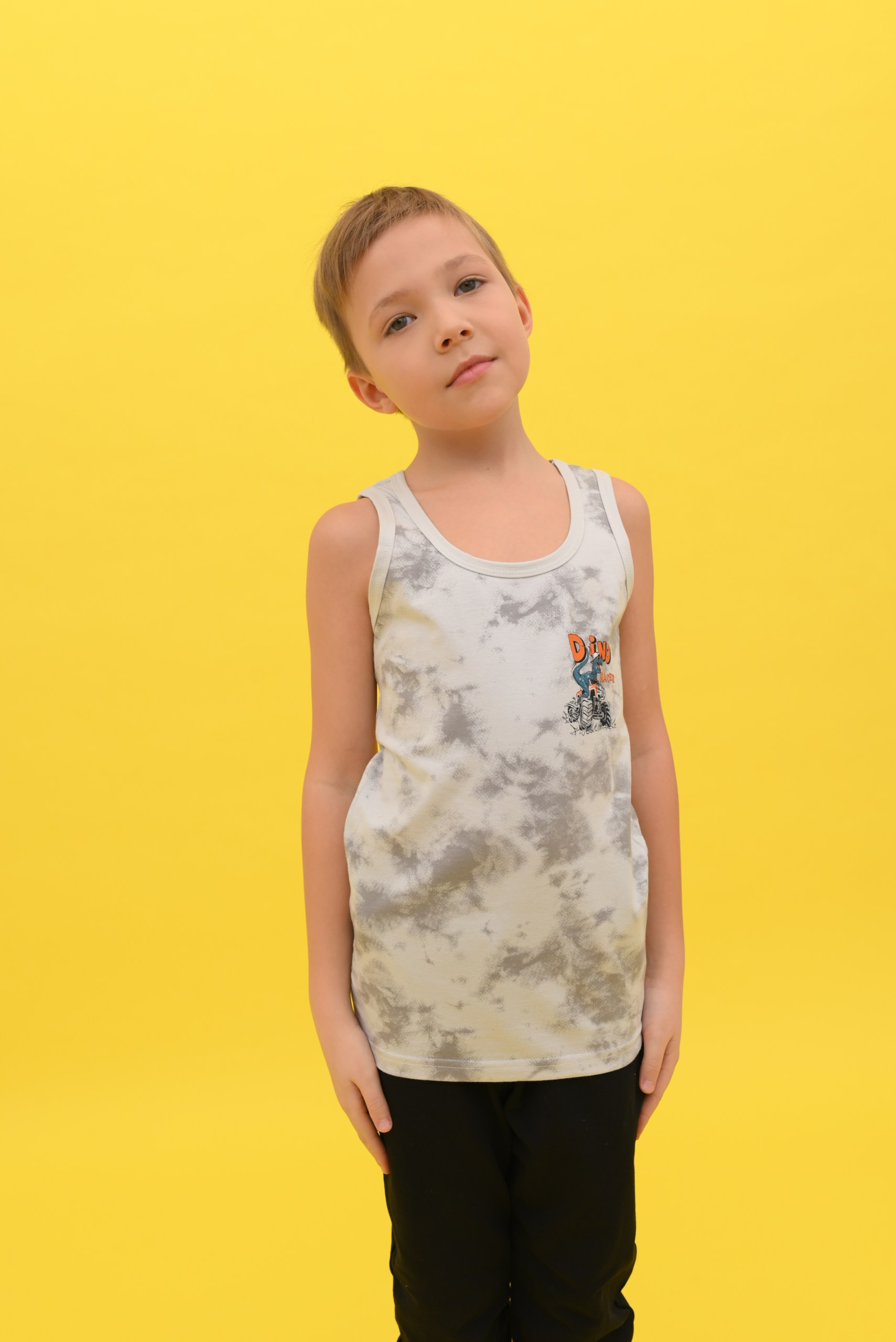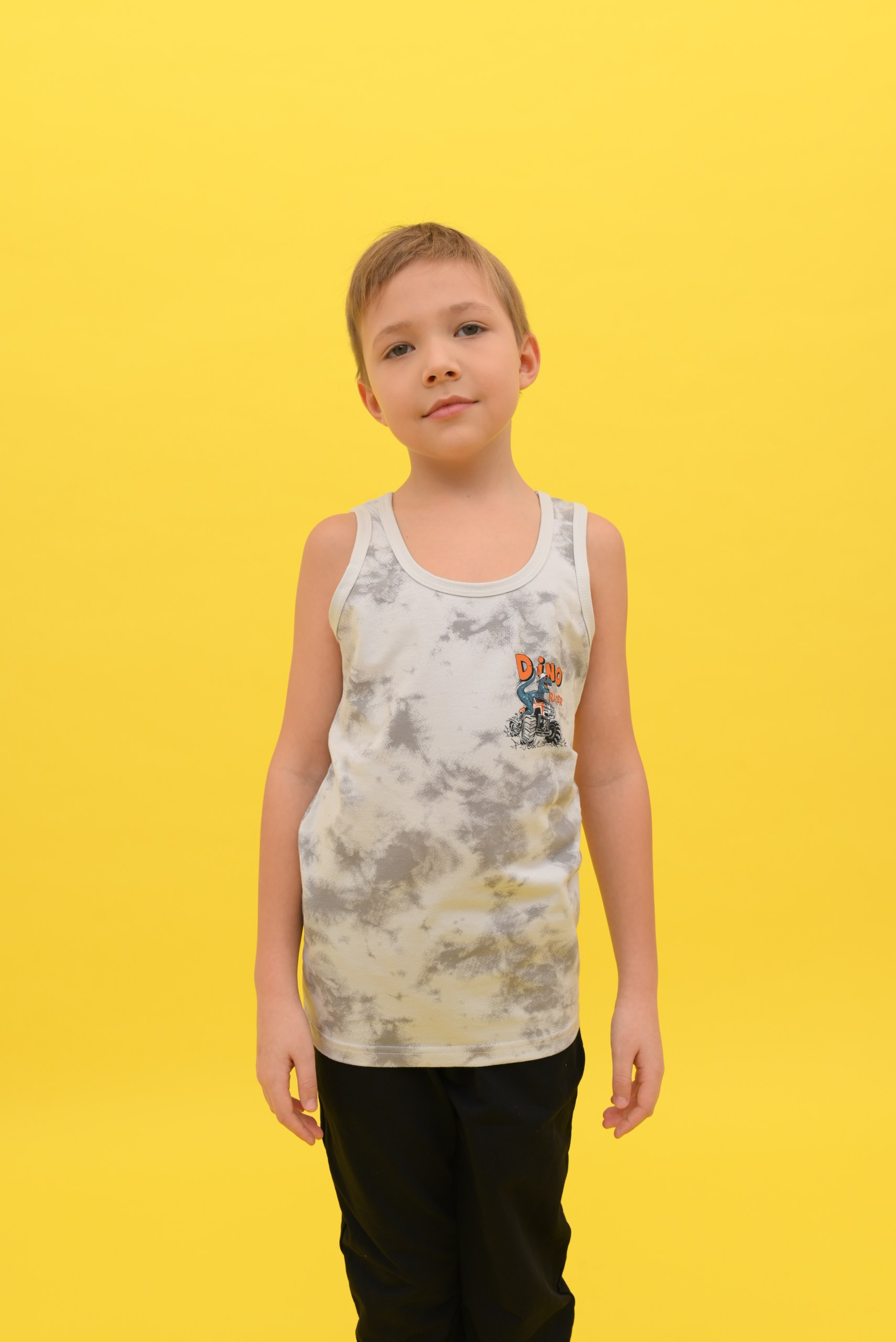 Майка для мальчика прямого кроя. Отличного качества, не выцветает и не растягивается после стирок. Цвета в ассортименте.