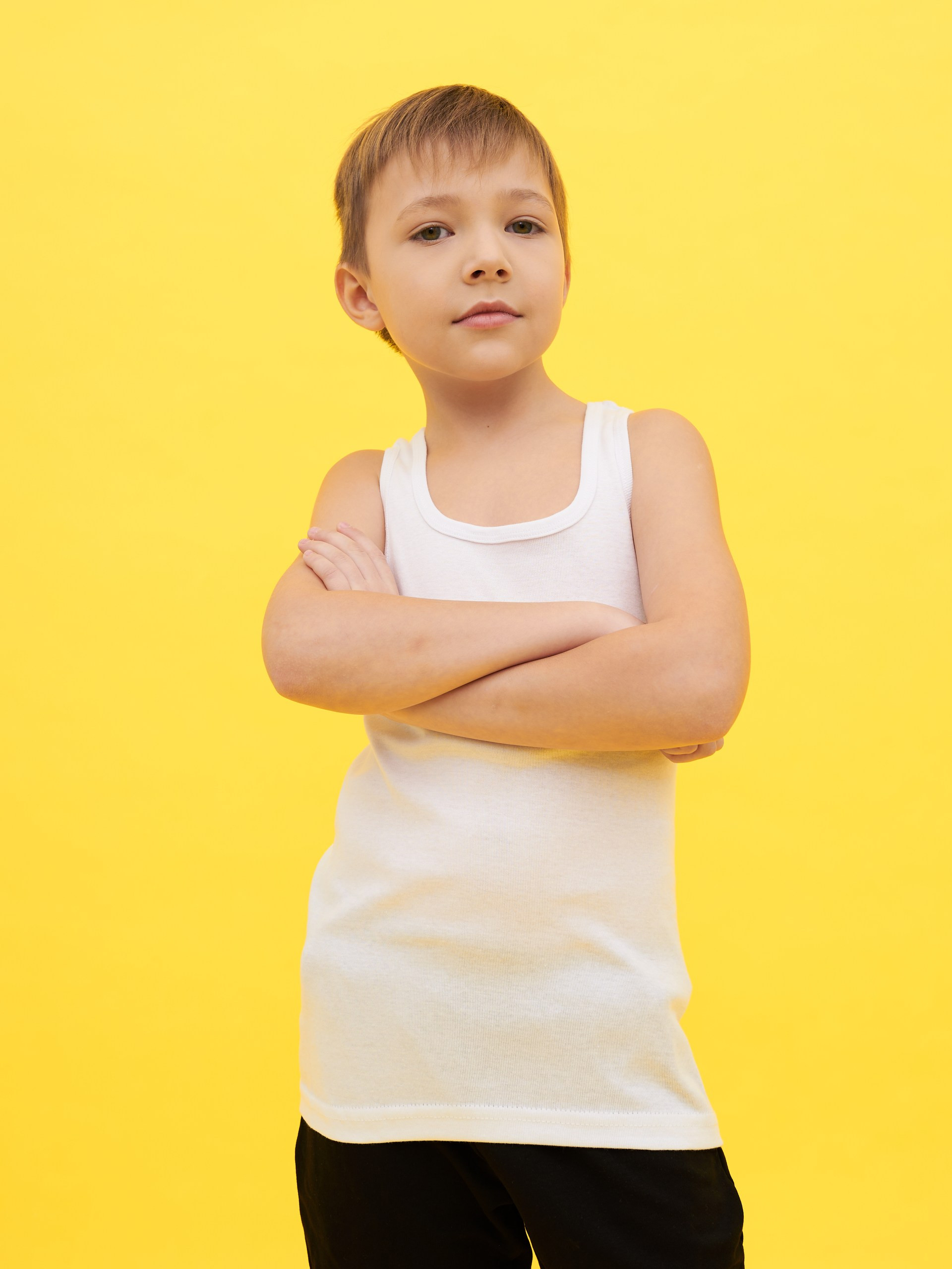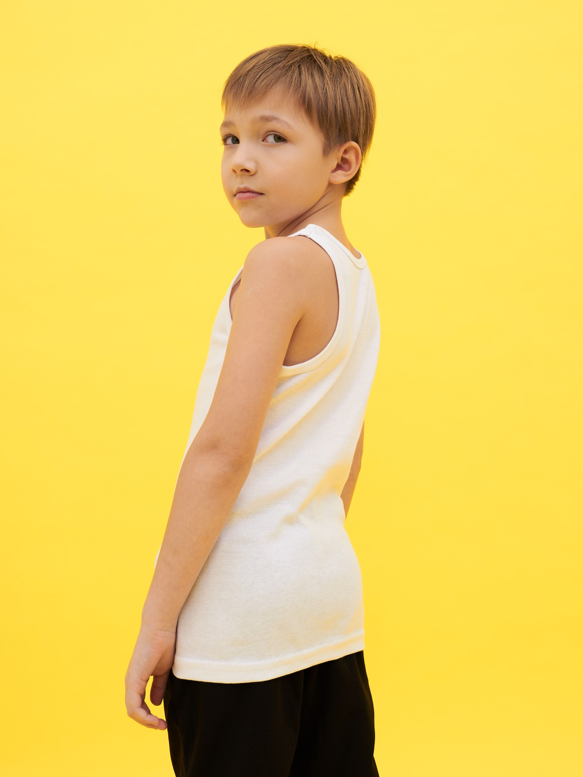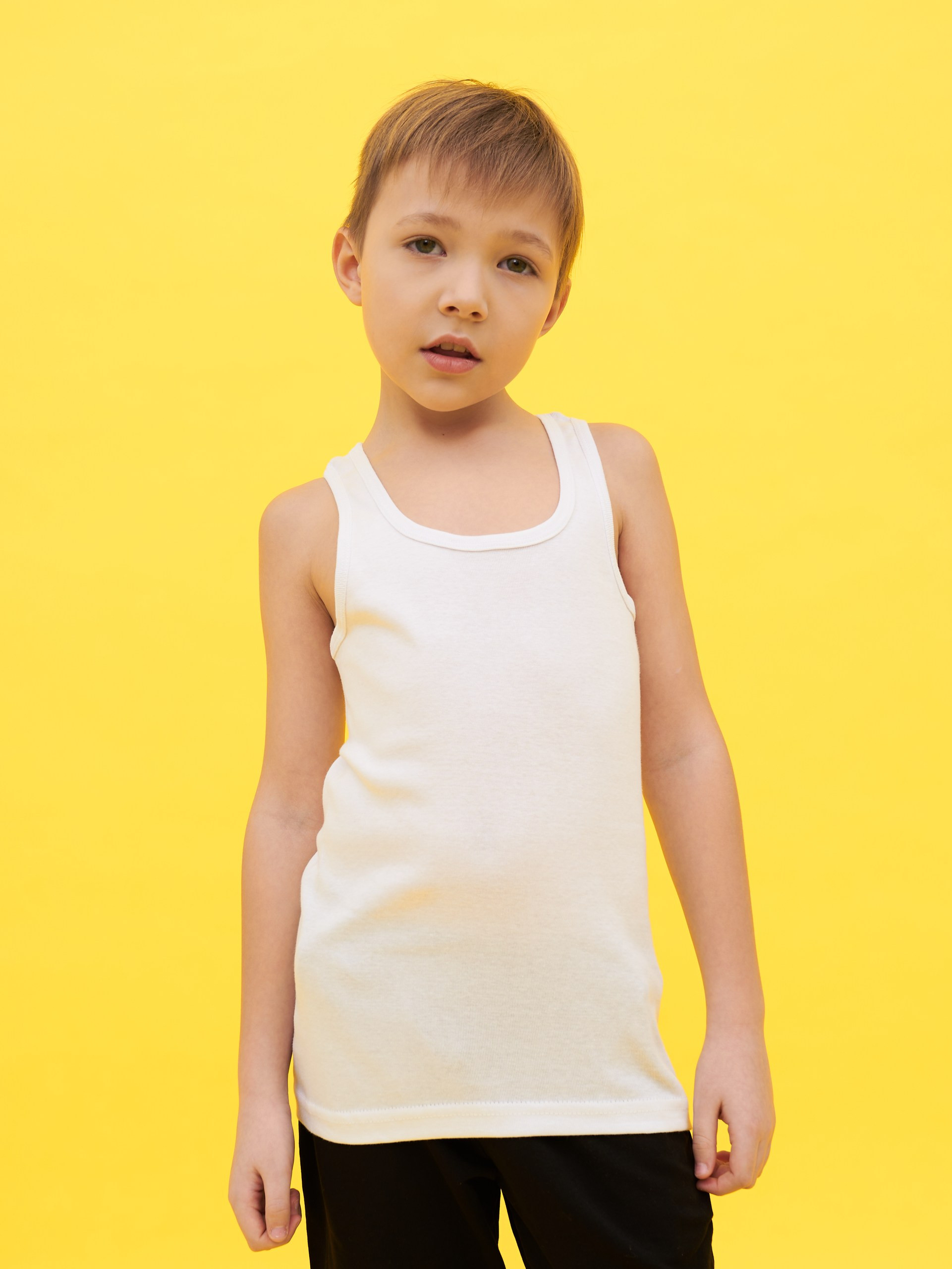 Классическая майка для мальчика прямого кроя. Отличного качества, не растягивается после стирок.