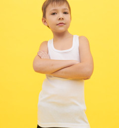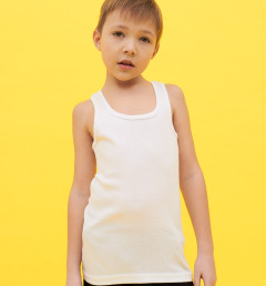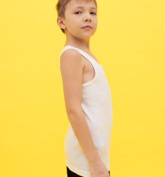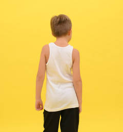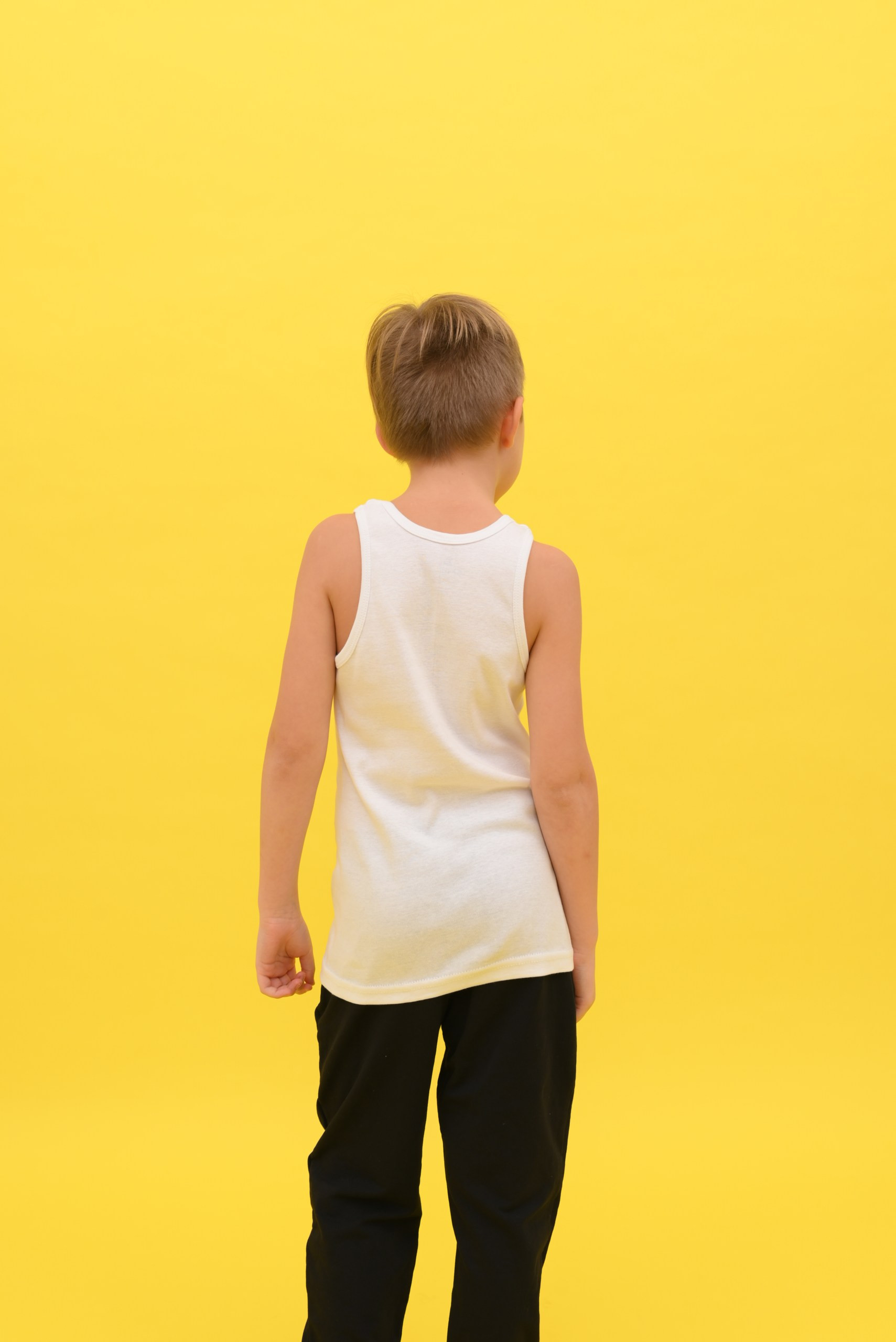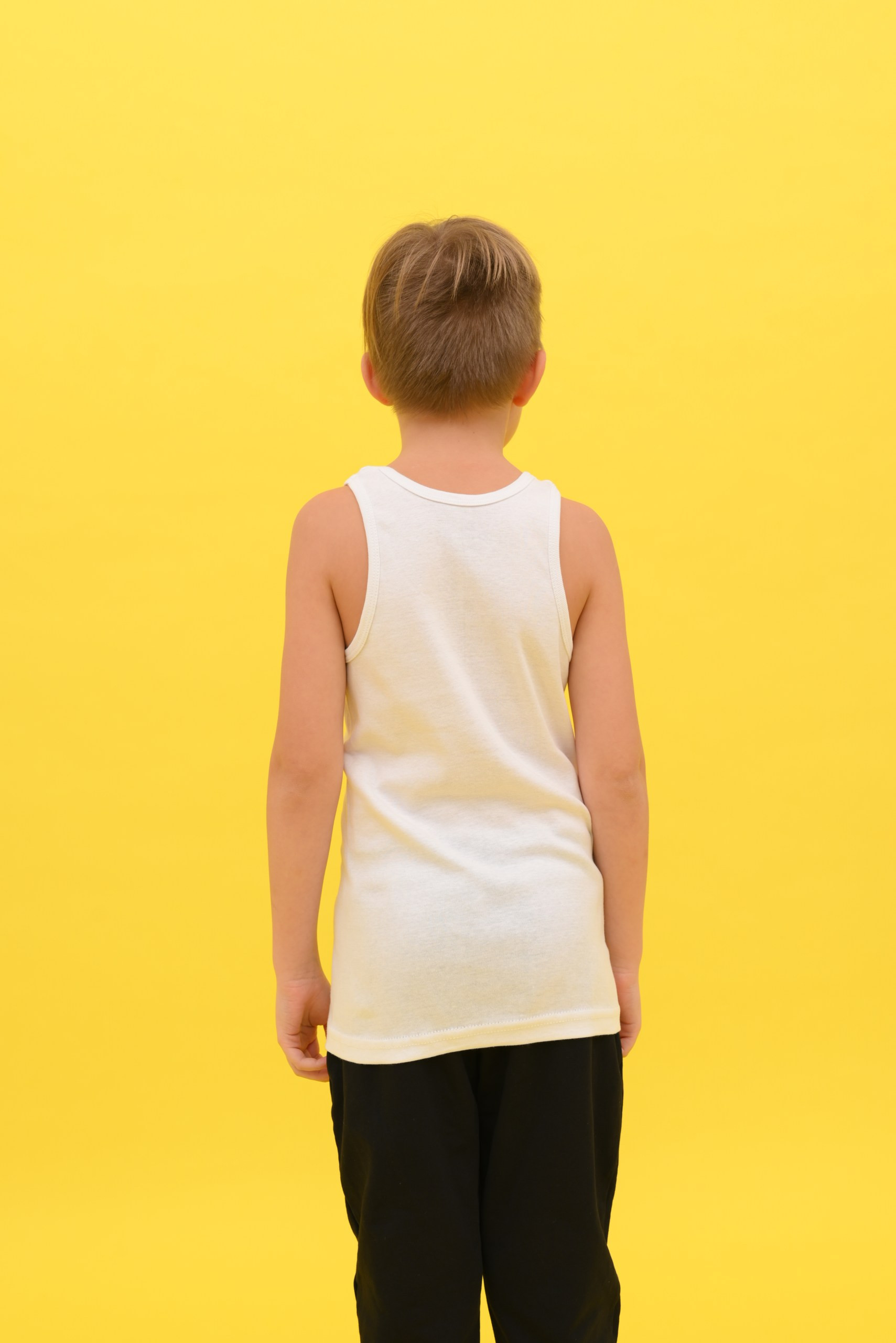 Классическая майка для мальчика прямого кроя. Отличного качества, не растягивается после стирок.