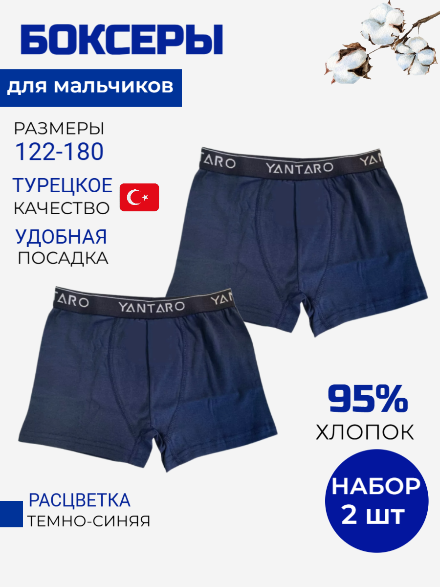 Цена указана за упаковку. В упаковке 2 шт. Боксеры для мальчика - выполнены из хлопка и эластана, пояс на мягкой резинке, который обеспечивает комфортную посадку и удобство при носке.