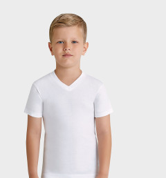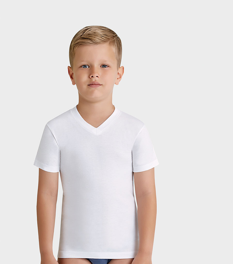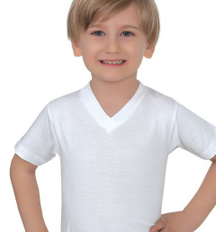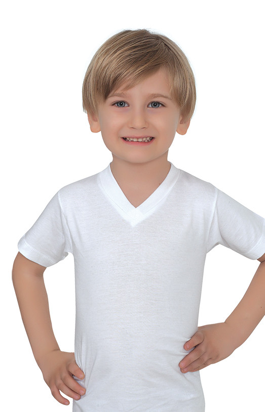 Детская белая футболка с коротким рукавом и V образной горловиной. Выполнена из 100% хлопка, пошив высочайшего качества, удобный крой, не будет вызывать дискомфорт или сковывать движения. Футболка не растягивается и не теряет форму, отлично зарекомендовала себя при активном использовании. Предназначена для использования в детских садах и школах. Перед выбором размера обратите внимание на размерную сетку!