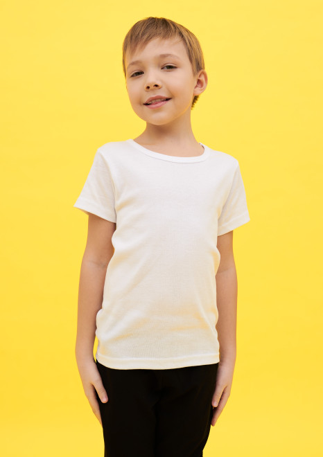 Детская белая футболка с коротким рукавом производства Турции. Выполнена из 100% хлопка, пошив высочайшего качества, удобный крой, не будет вызывать дискомфорт или сковывать движения. Футболка не растягивается и не теряет форму, отлично зарекомендовала себя при активном использовании. Предназначена для использования в детских садах и школах.