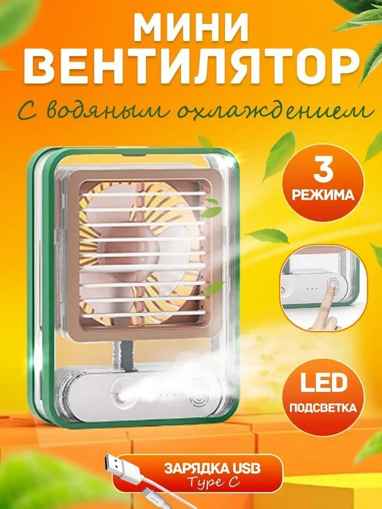 Мини вентилятор c увлажнителем мини кондиционер, зеленый