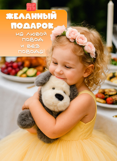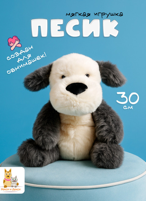 Мягкая плюшевая игрушка обнимашка собака 30 см, серая Dog-grey-30
