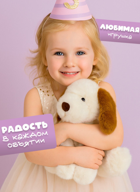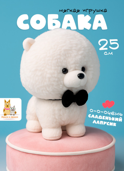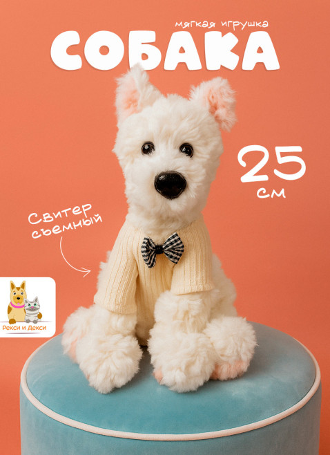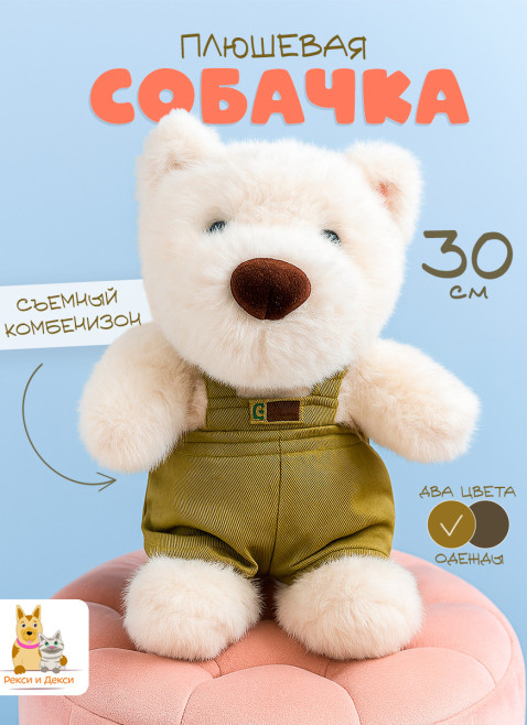 Мягкая плюшевая игрушка обнимашка собака 30 см, белая Dog-white-30