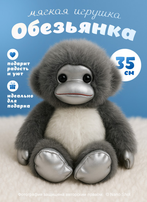 Мягкая игрушка Обезьяна 35 см, серая Monkey_grey_35