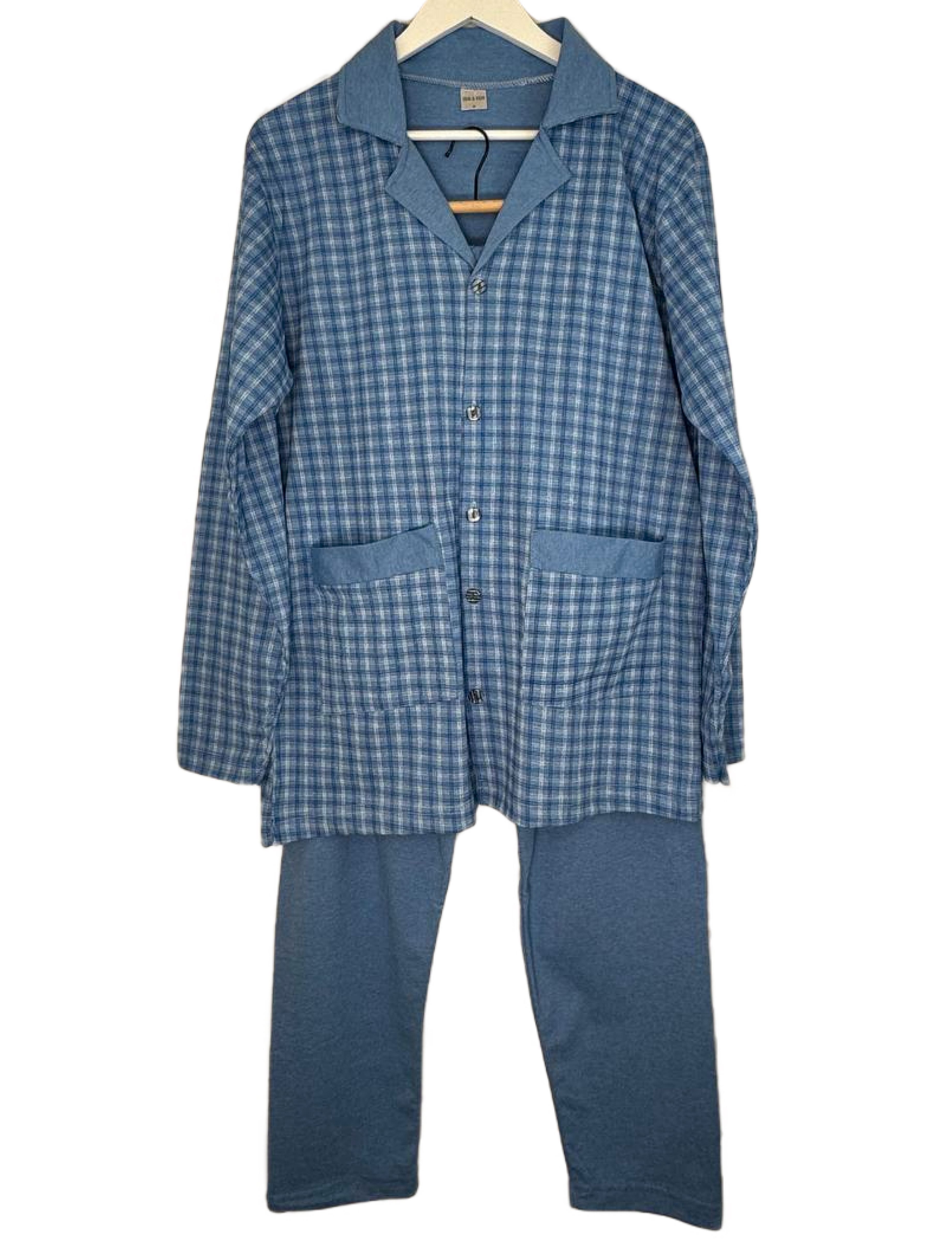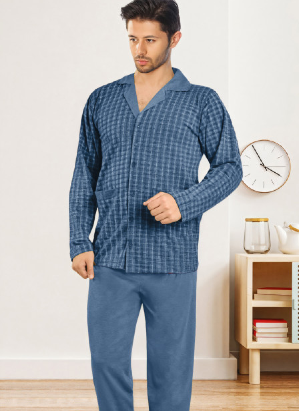 Мужской комплект CEM&KEN выполнен из натурального хлопка (100%), что обеспечивает комфорт и удобство при ношении. Комплект включает рубашку с длинным рукавом и брюки. Рубашка имеет классический дизайн с длинными рукавами, застежкой на пуговицах и накладными карманами. Воротник стояче-отложной формы придает образу аккуратность и стиль. Брюки выполнены на мягкой резинке, что обеспечивает свободу движений и дополнительный комфорт.