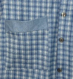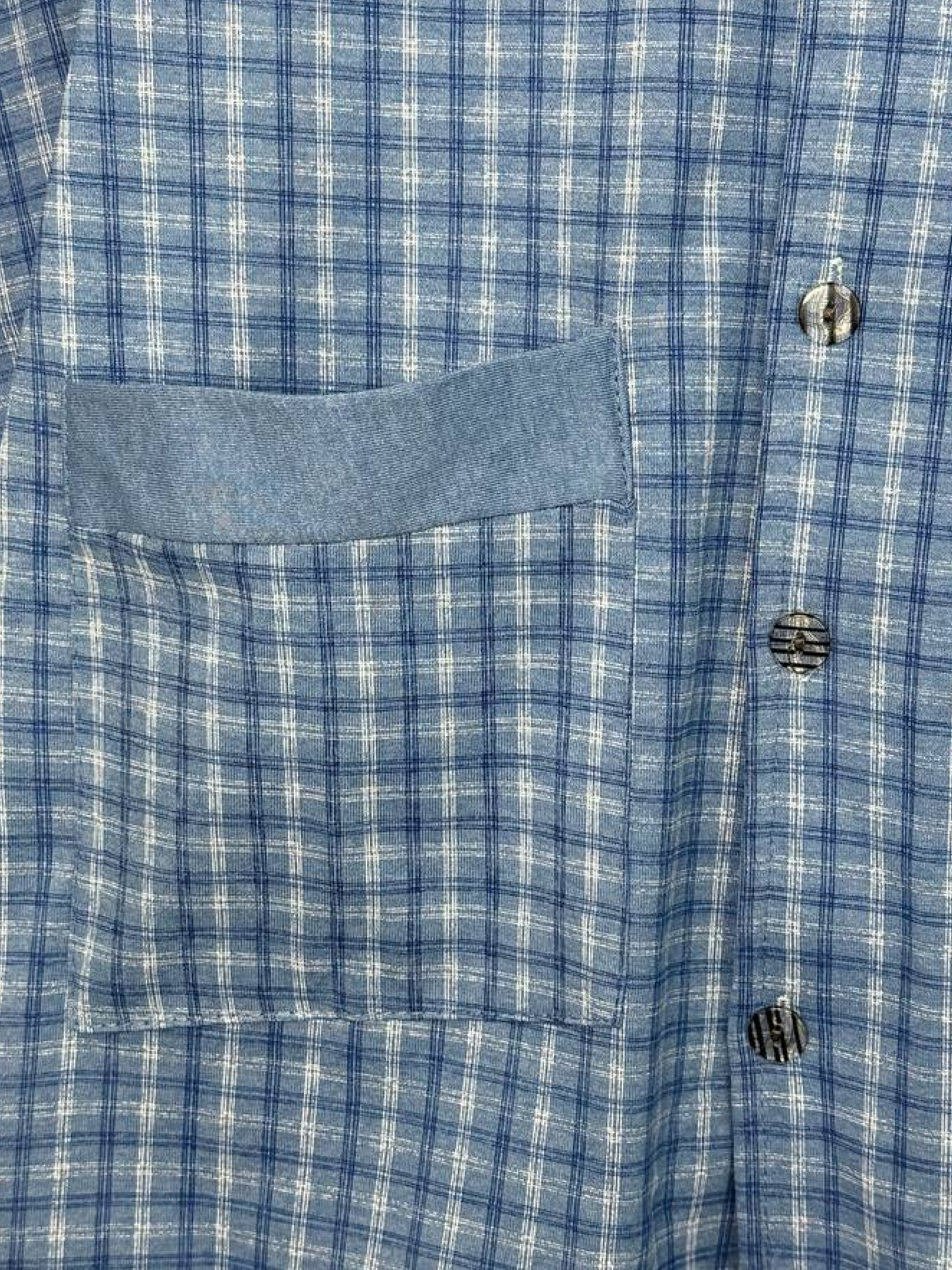 - Дизайн рубашки: длинные рукава, пуговицы, накладные карманы, стояче-отложной воротник