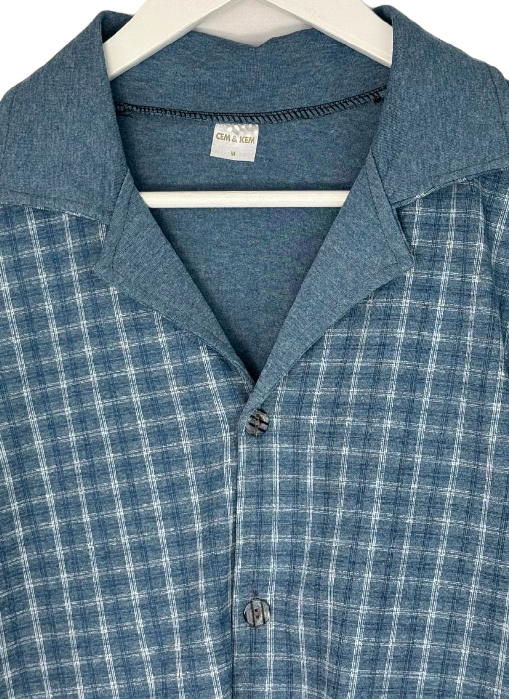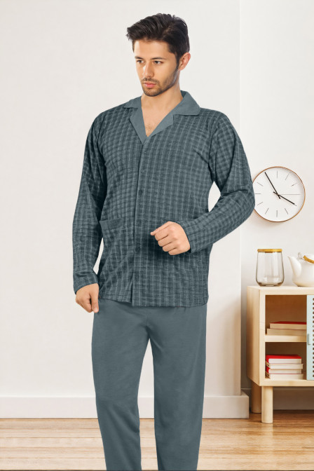 Мужской комплект CEM&KEN выполнен из натурального хлопка (100%), что обеспечивает комфорт и удобство при ношении. Комплект включает рубашку с длинным рукавом и брюки. Рубашка имеет классический дизайн с длинными рукавами, застежкой на пуговицах и накладными карманами. Воротник стояче-отложной формы придает образу аккуратность и стиль. Брюки выполнены на мягкой резинке, что обеспечивает свободу движений и дополнительный комфорт.