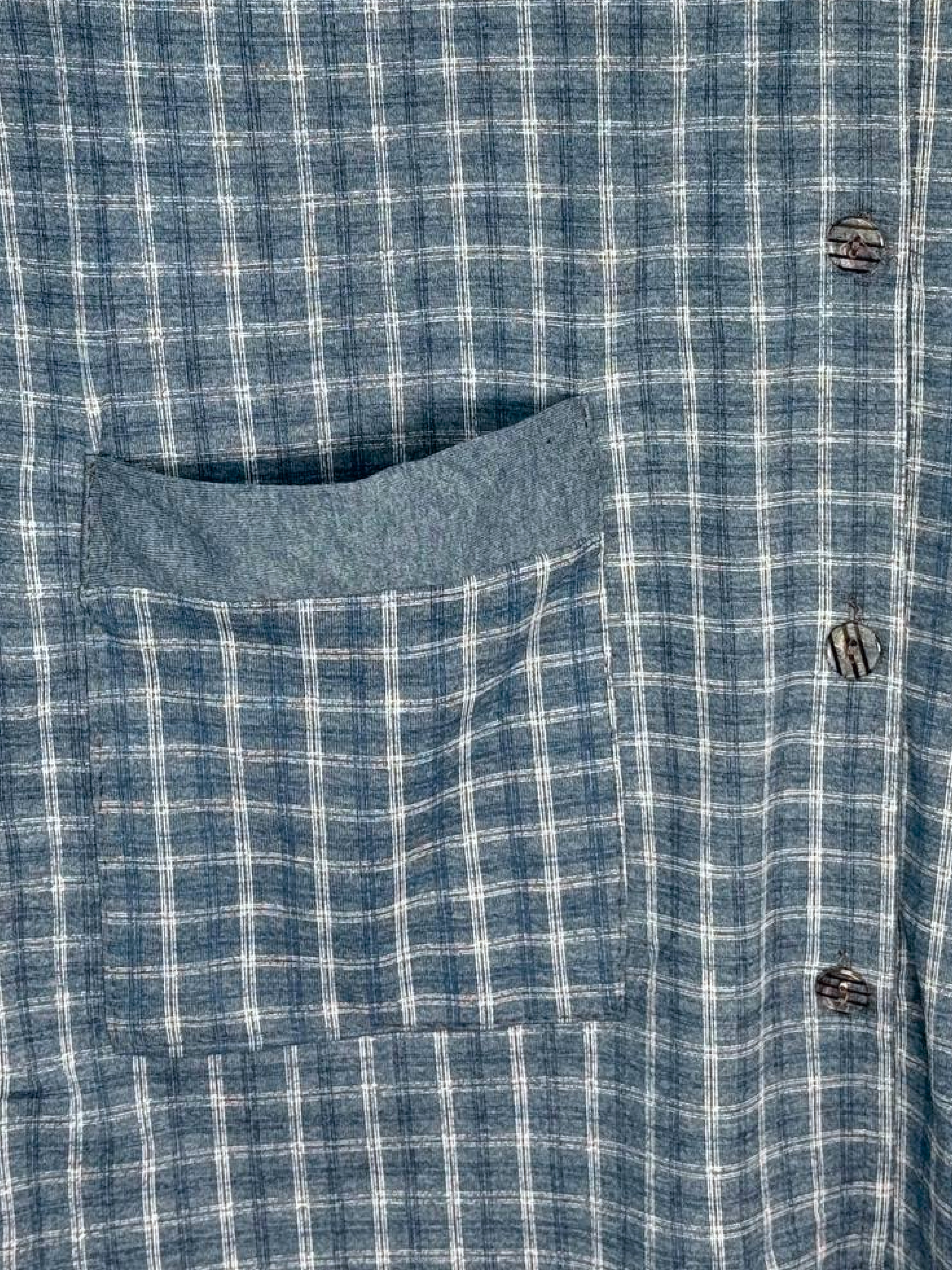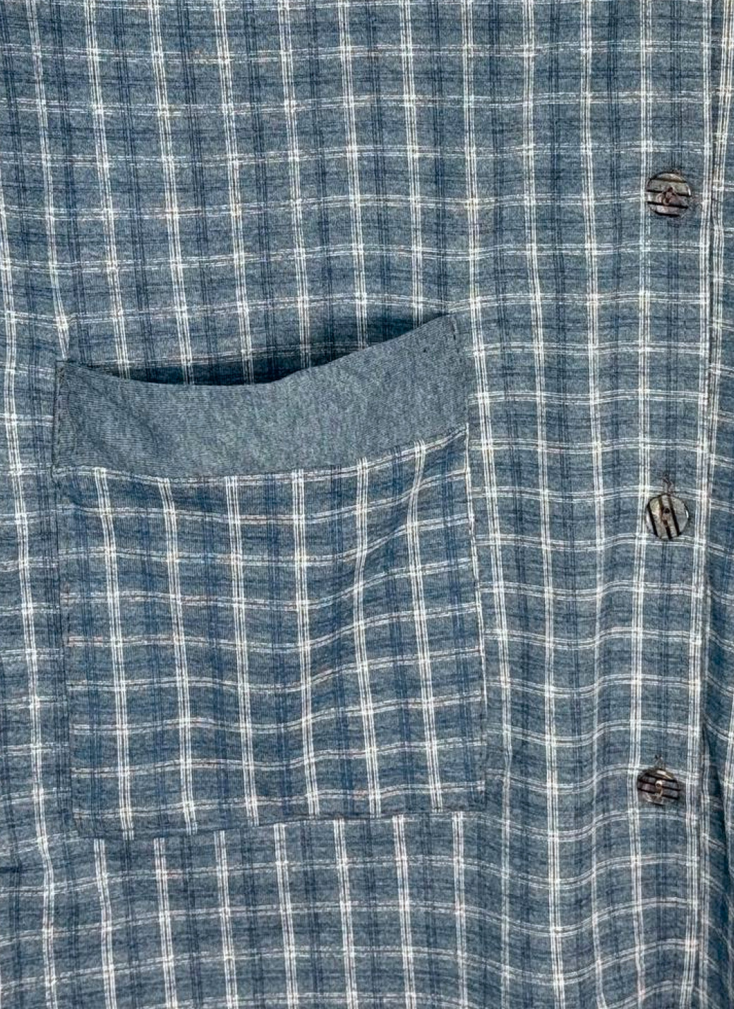 - Дизайн рубашки: длинные рукава, пуговицы, накладные карманы, стояче-отложной воротник