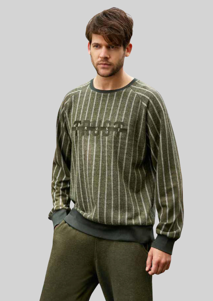 Представьте себе зимние и осенние вечера, когда хочется только одного – укутаться в уют и комфорт. Эта мужская пижама со штанами и футболкой именно для таких моментов